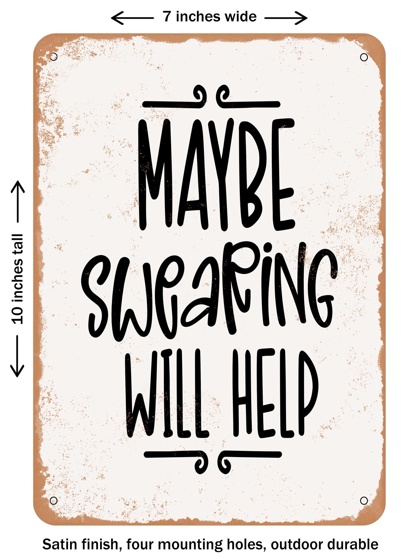 DECORATIVE METAL SIGN - Maybe Swearing Will Help - Vintage Rusty Look