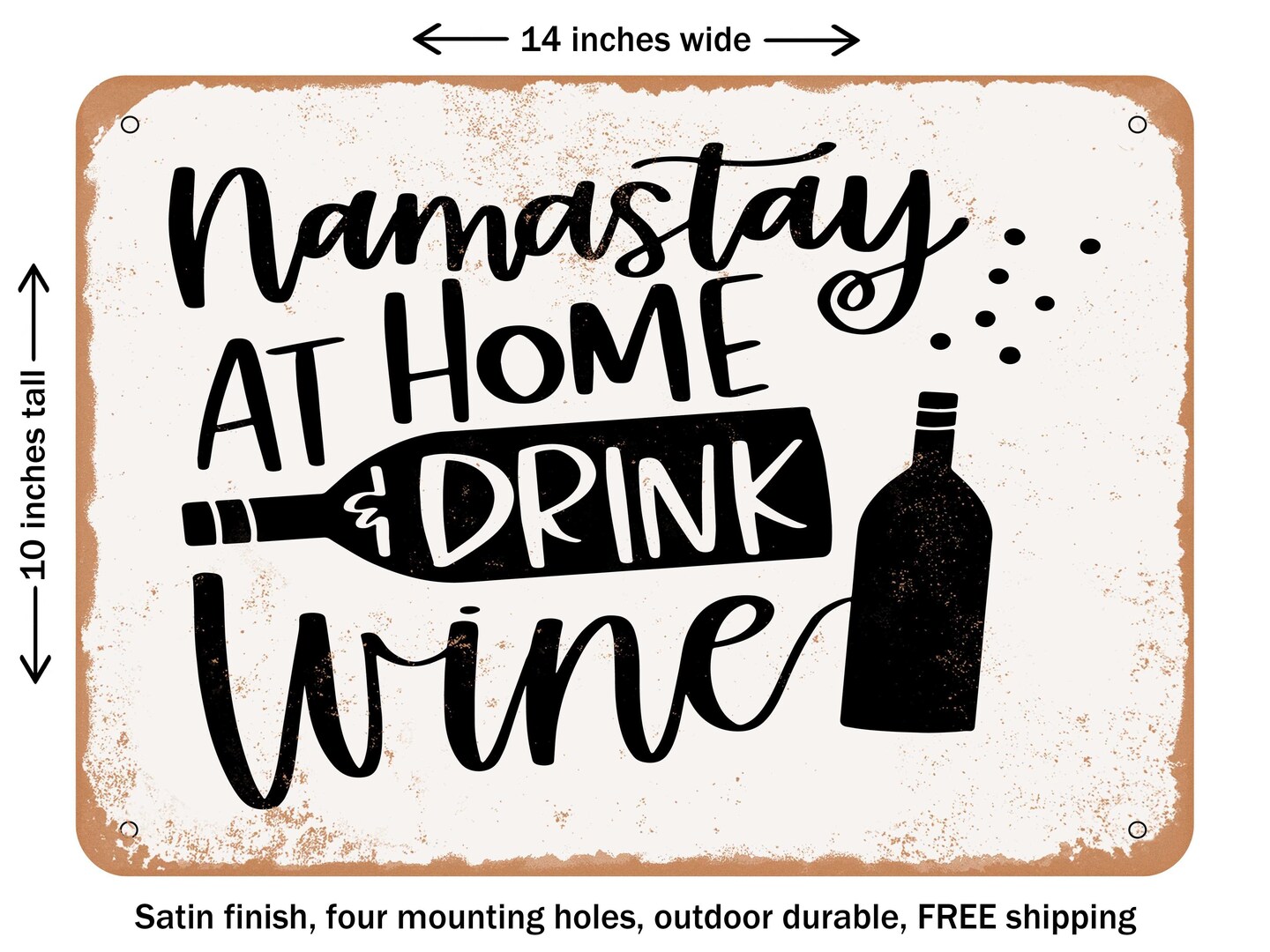 DECORATIVE METAL SIGN - Namastay At Home and Drink Wine - Vintage Rusty Look