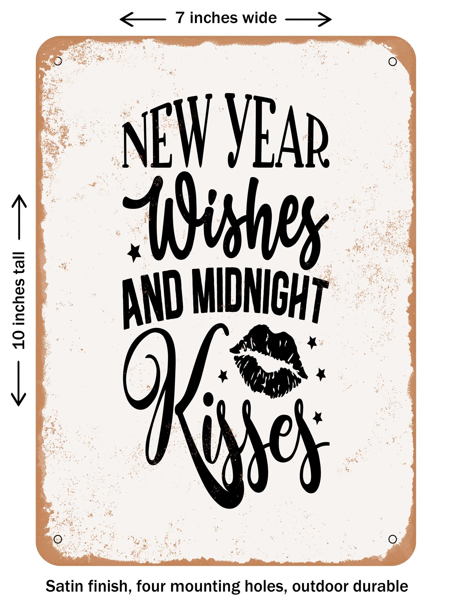 DECORATIVE METAL SIGN - New Year Wishes and Midnight Kisses - Vintage Rusty Look