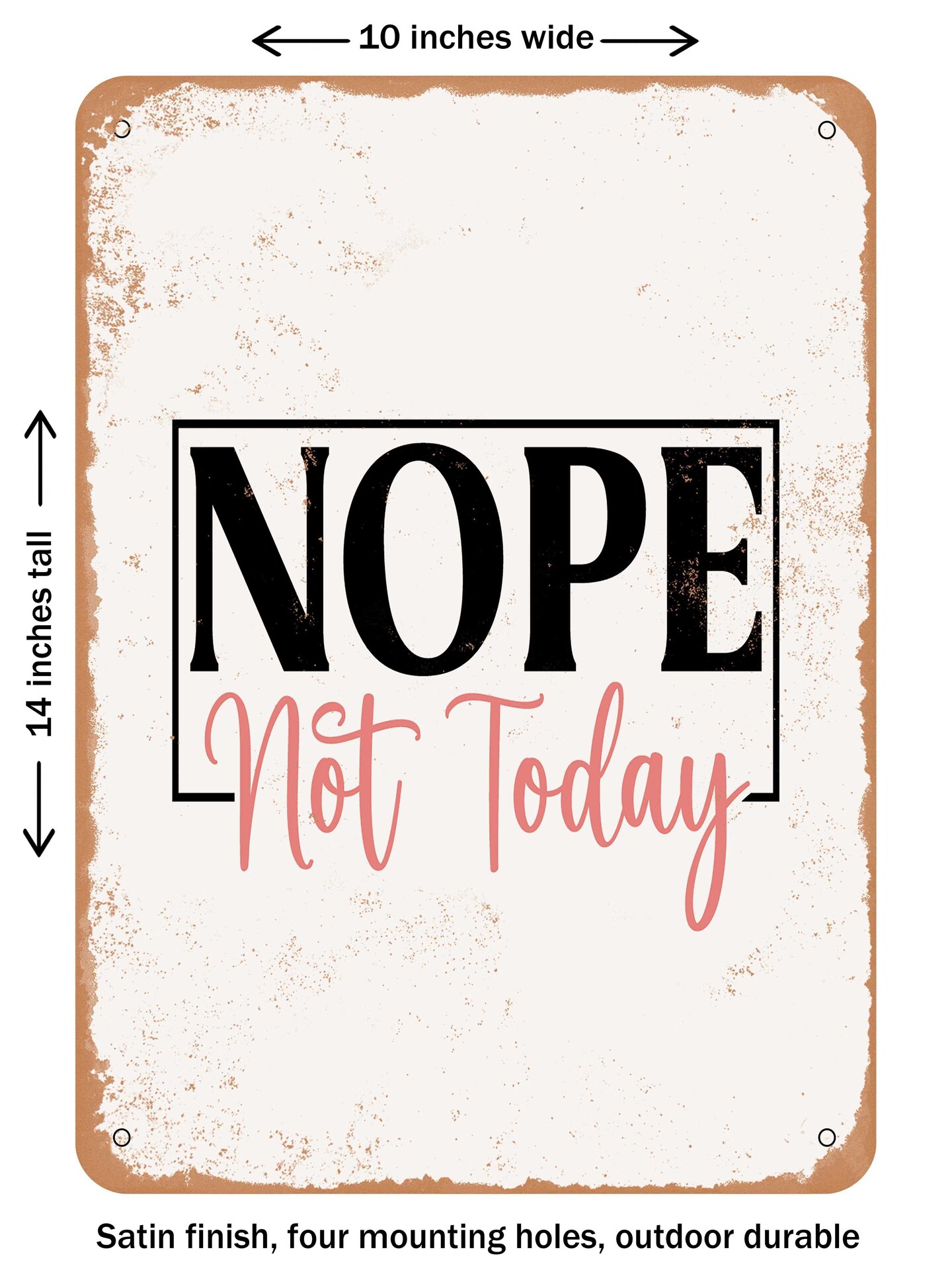 DECORATIVE METAL SIGN - Nope Not today - Vintage Rusty Look