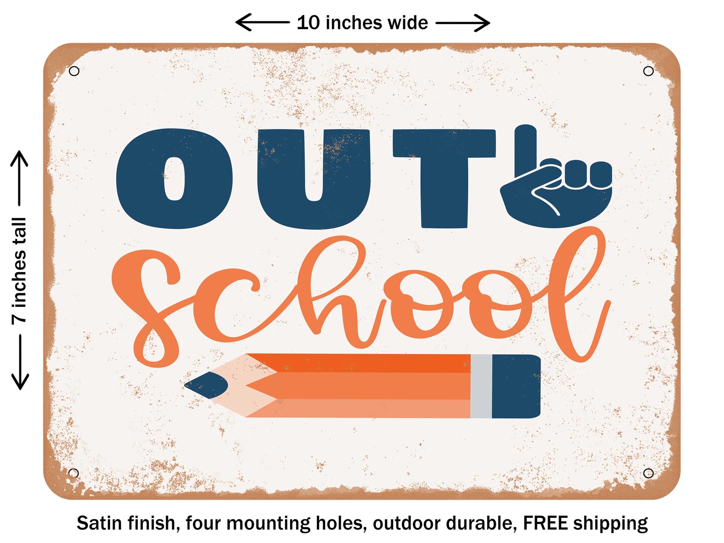 DECORATIVE METAL SIGN - Out School - Vintage Rusty Look