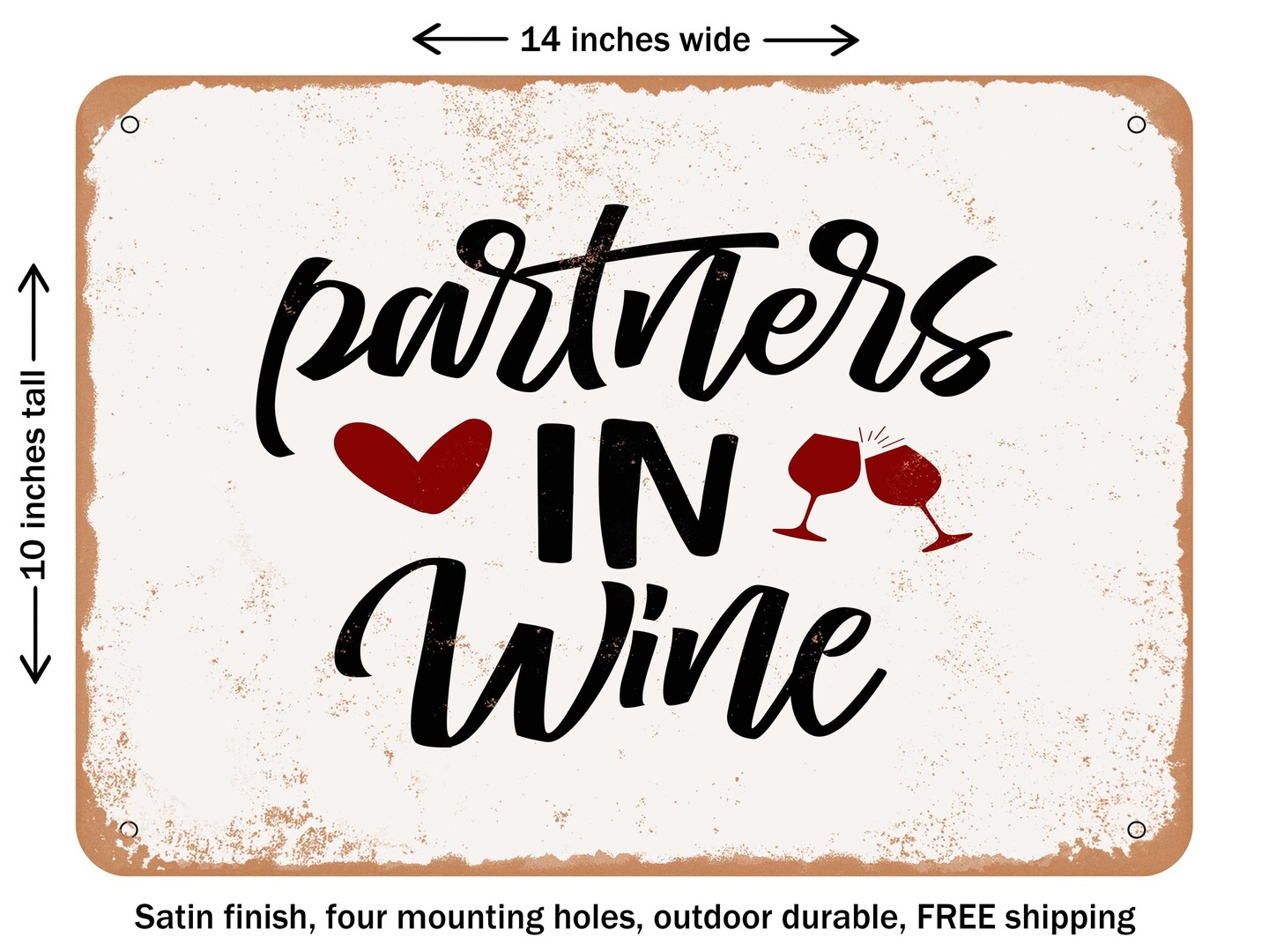DECORATIVE METAL SIGN - Partners In Wine - 3 - Vintage Rusty Look