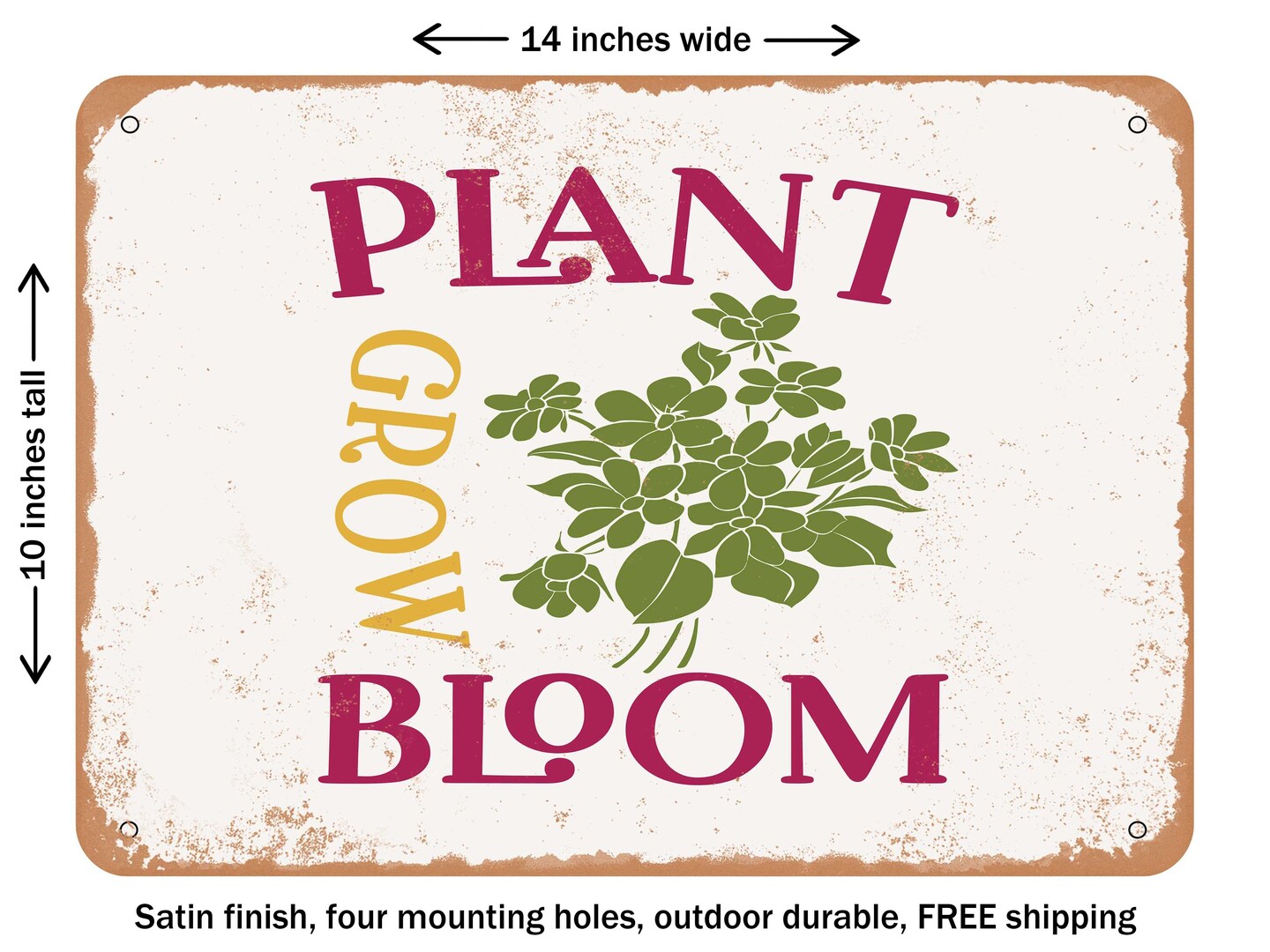 DECORATIVE METAL SIGN - Plant Grow Bloom - Vintage Rusty Look