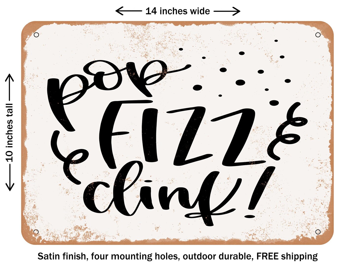DECORATIVE METAL SIGN - Pop Fizz Clink - Vintage Rusty Look