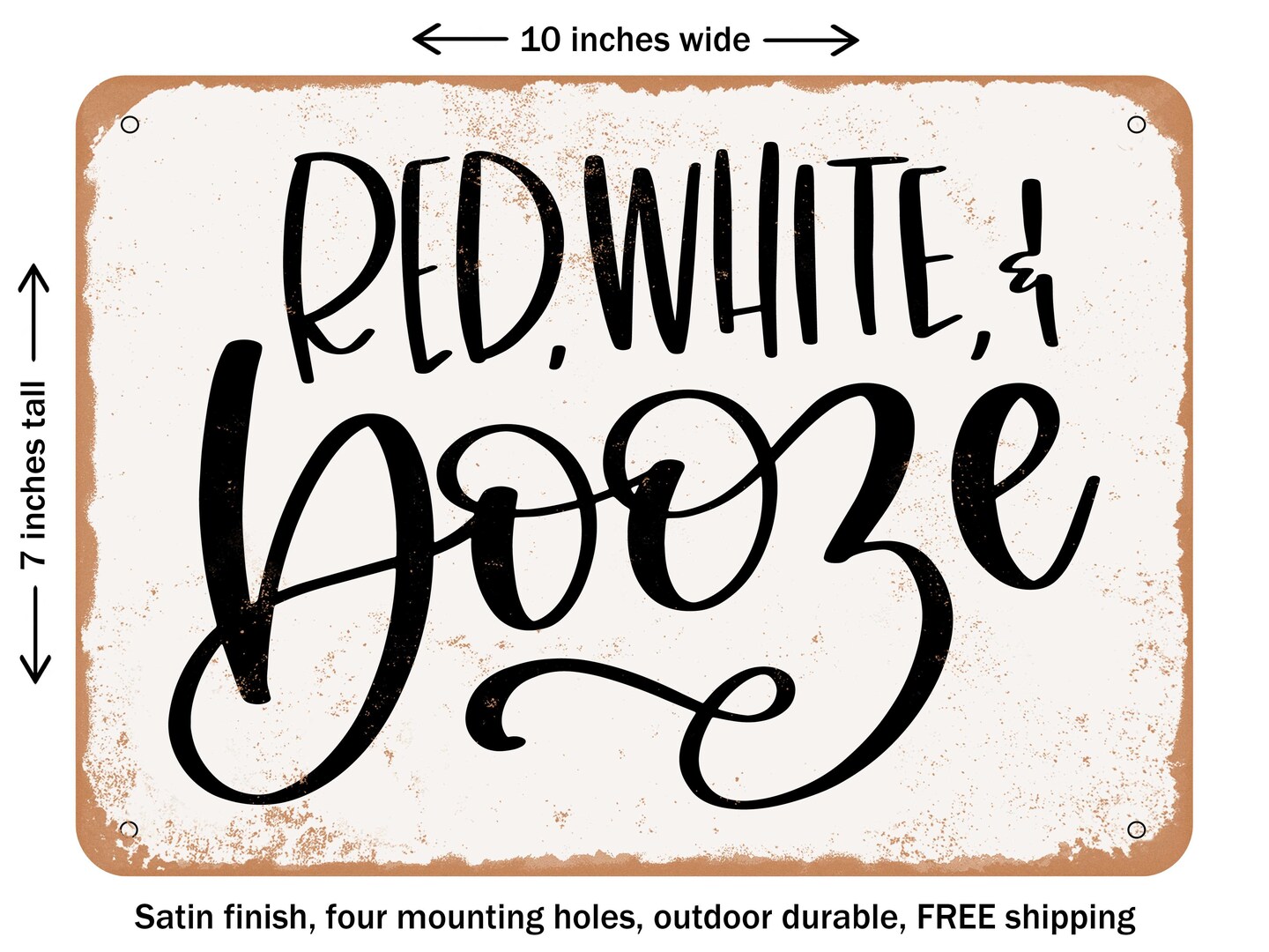 DECORATIVE METAL SIGN - Red White and Booze - Vintage Rusty Look