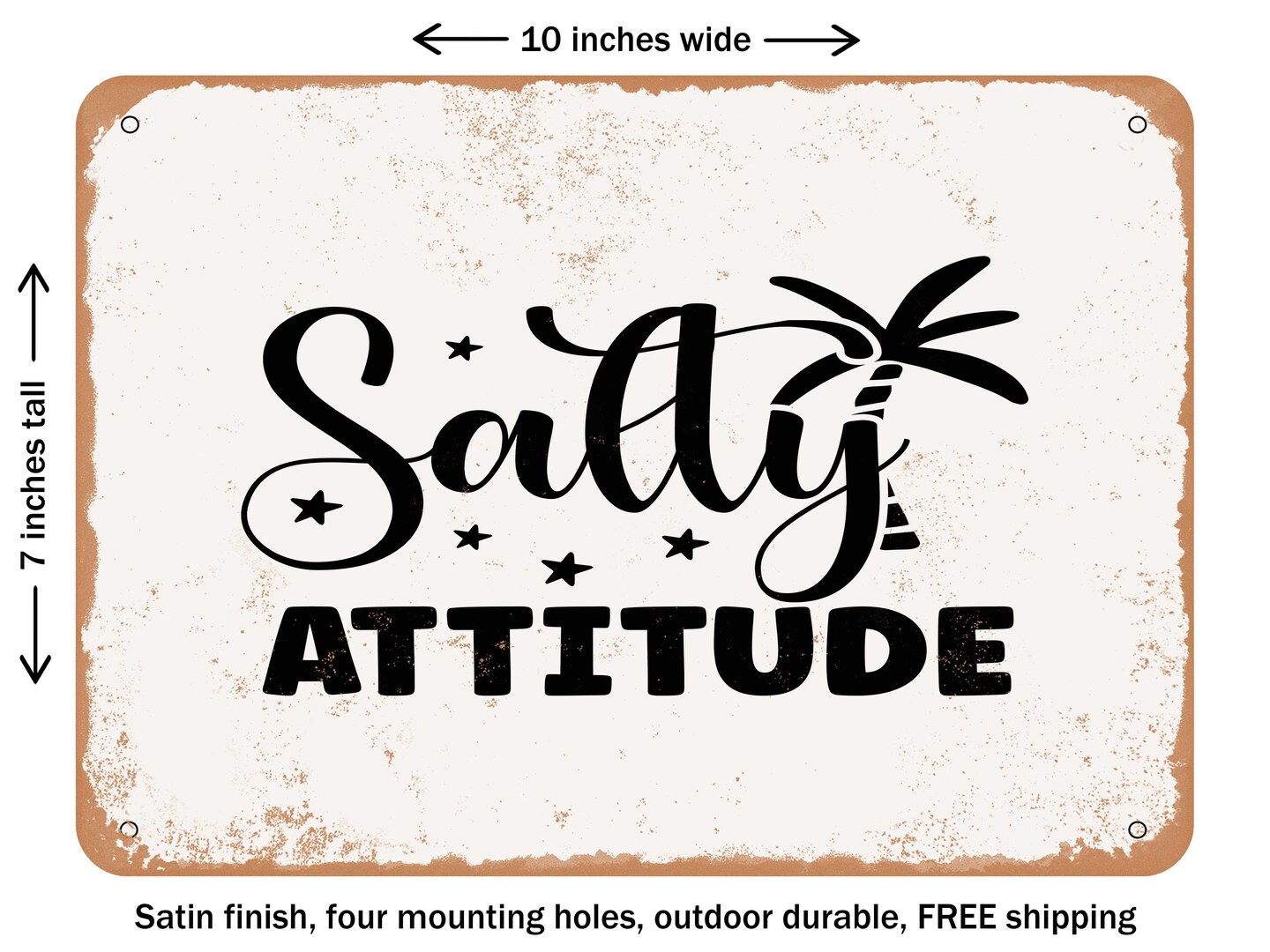 DECORATIVE METAL SIGN - Salty Attitude - Vintage Rusty Look