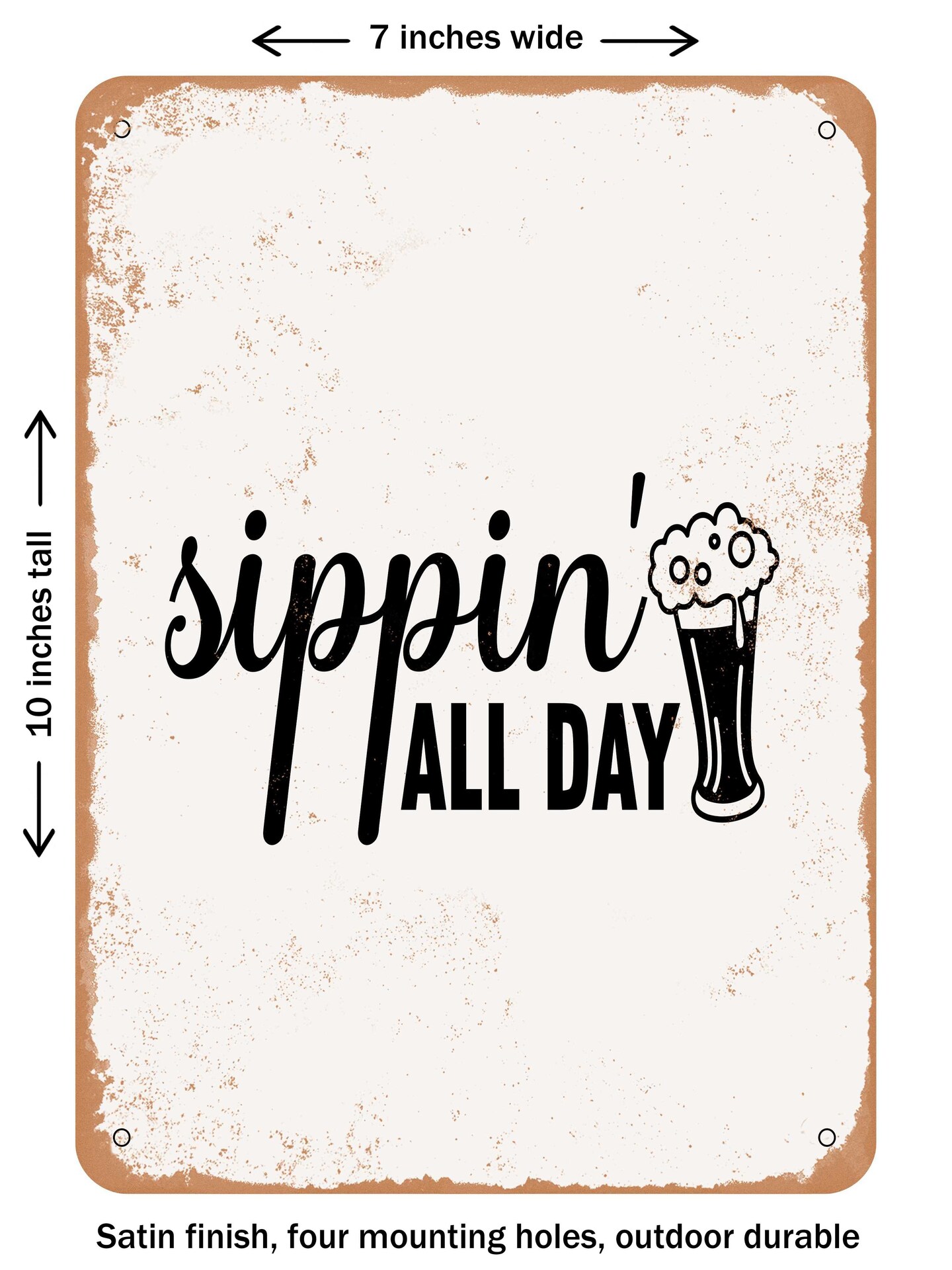DECORATIVE METAL SIGN - Sippin All Day - 2 - Vintage Rusty Look