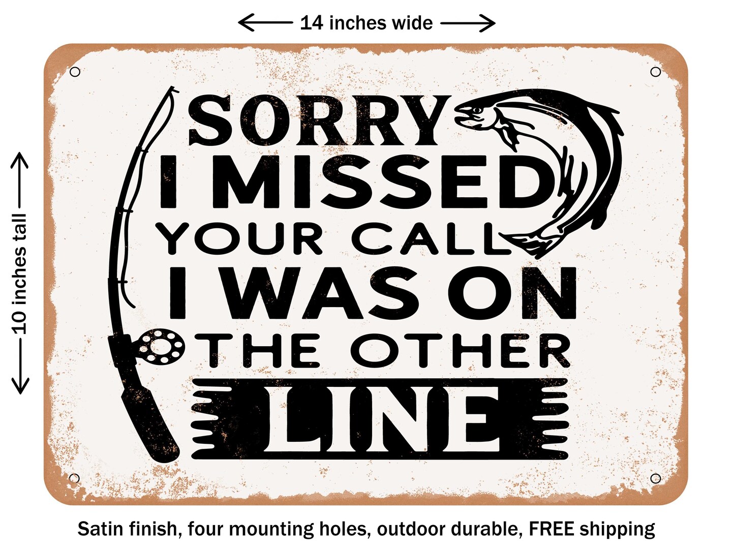 DECORATIVE METAL SIGN - Sorry I Missed Your Call I Was On the Other Line - Vintage Rusty Look