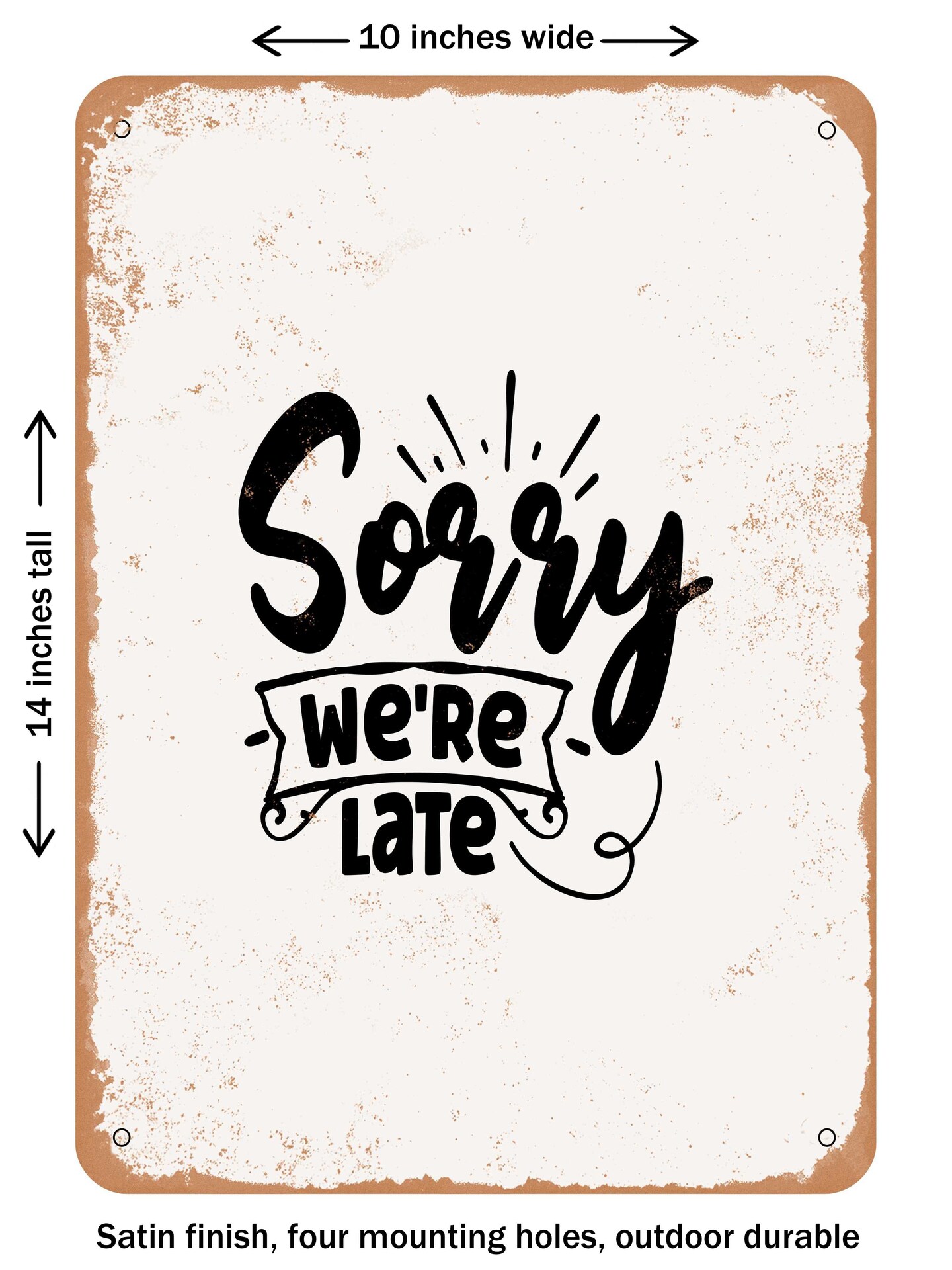 DECORATIVE METAL SIGN - Sorry Were Late - Vintage Rusty Look