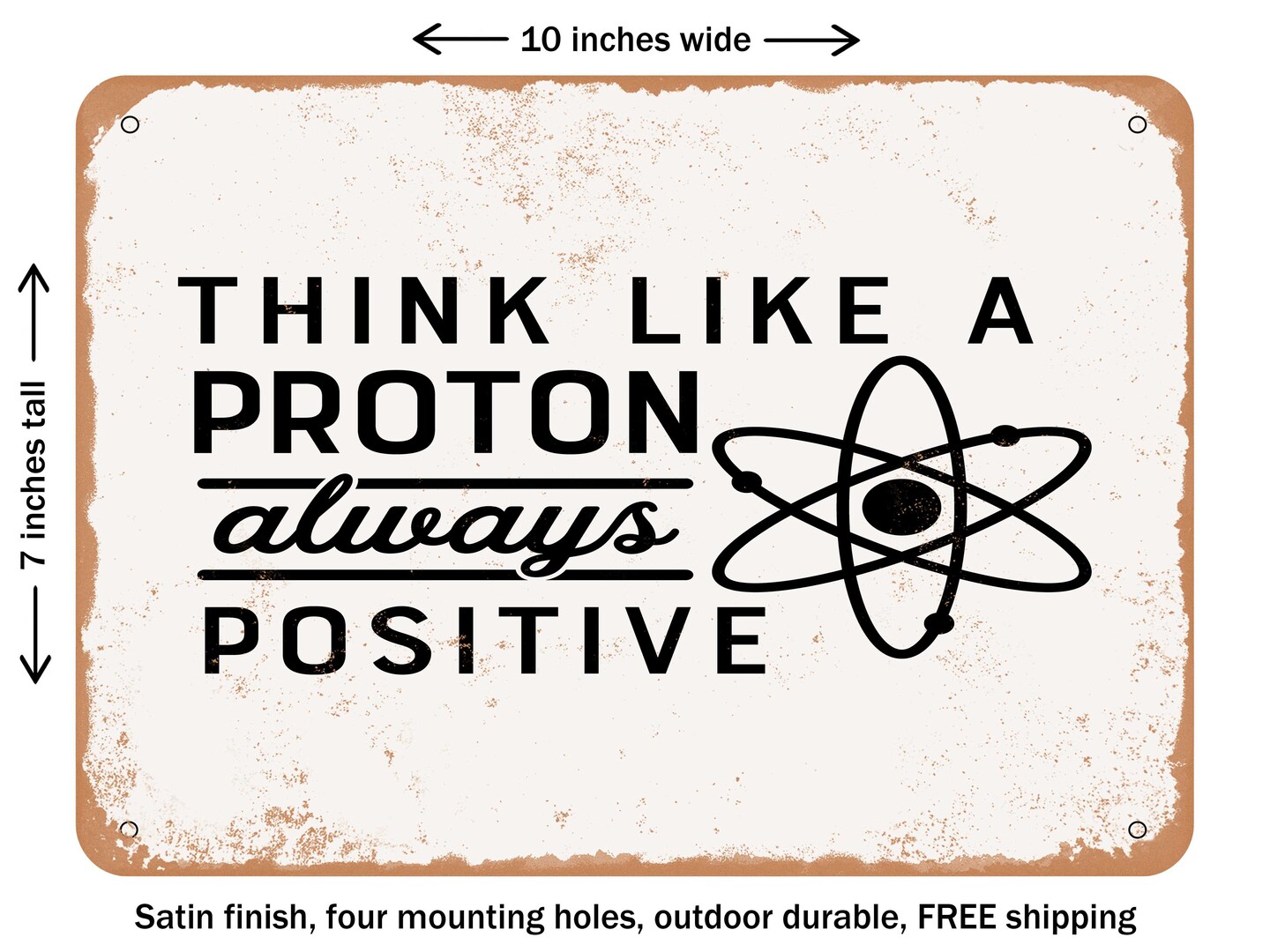 DECORATIVE METAL SIGN - Think Like a Proton Always Positive - Vintage Rusty Look