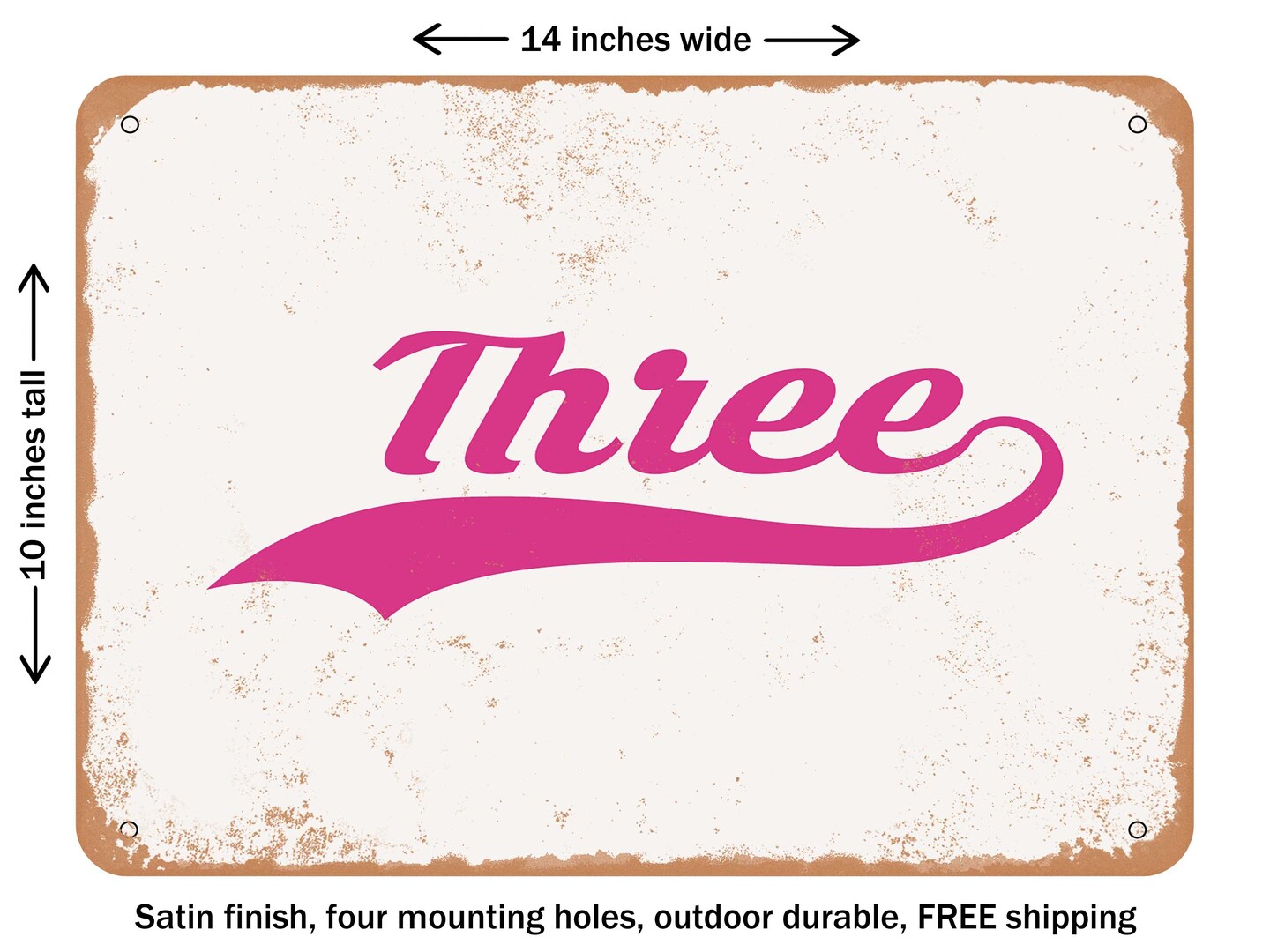 DECORATIVE METAL SIGN - Three - 3 - Vintage Rusty Look