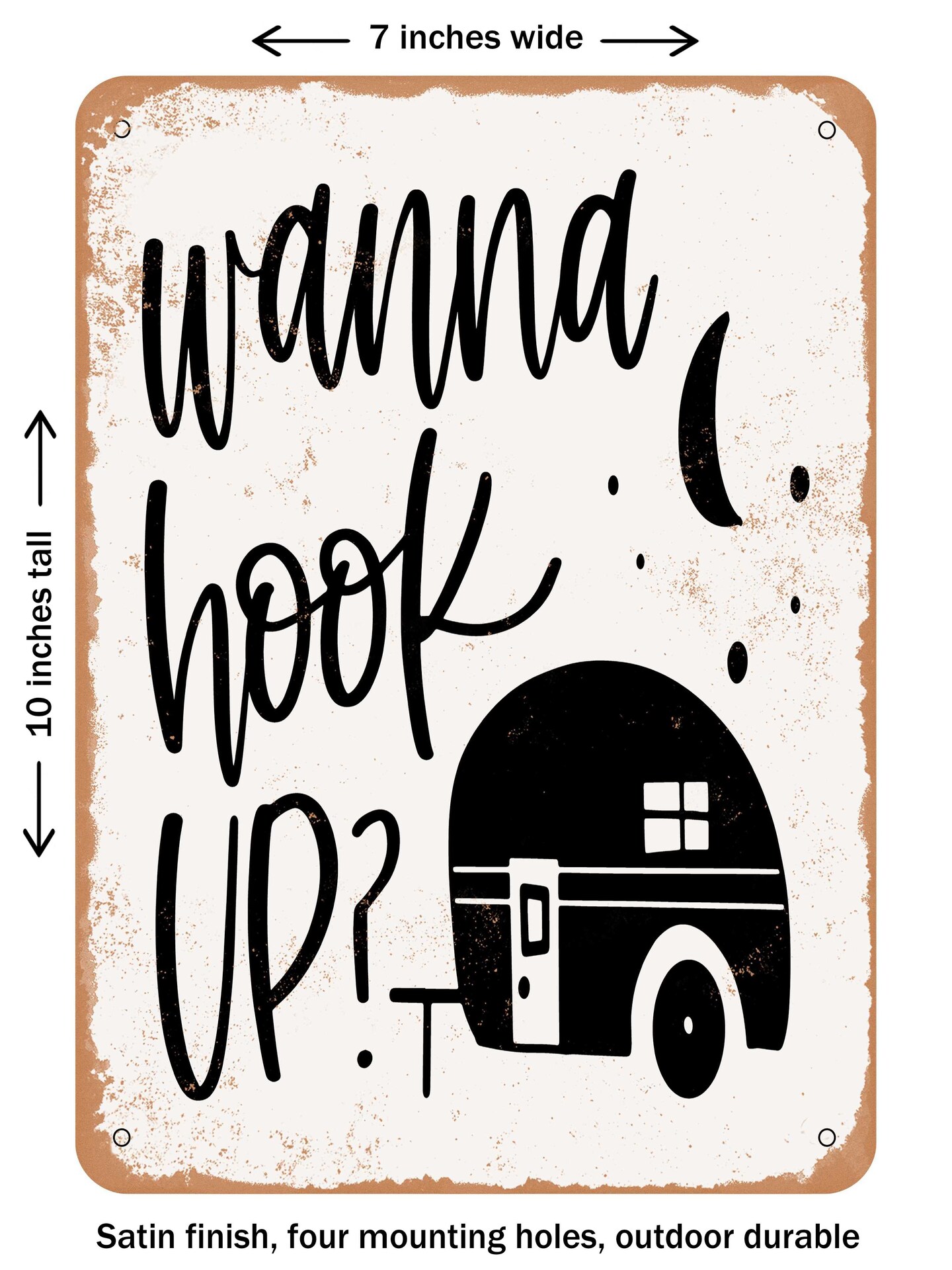 DECORATIVE METAL SIGN - Wanna Hook Up - Vintage Rusty Look