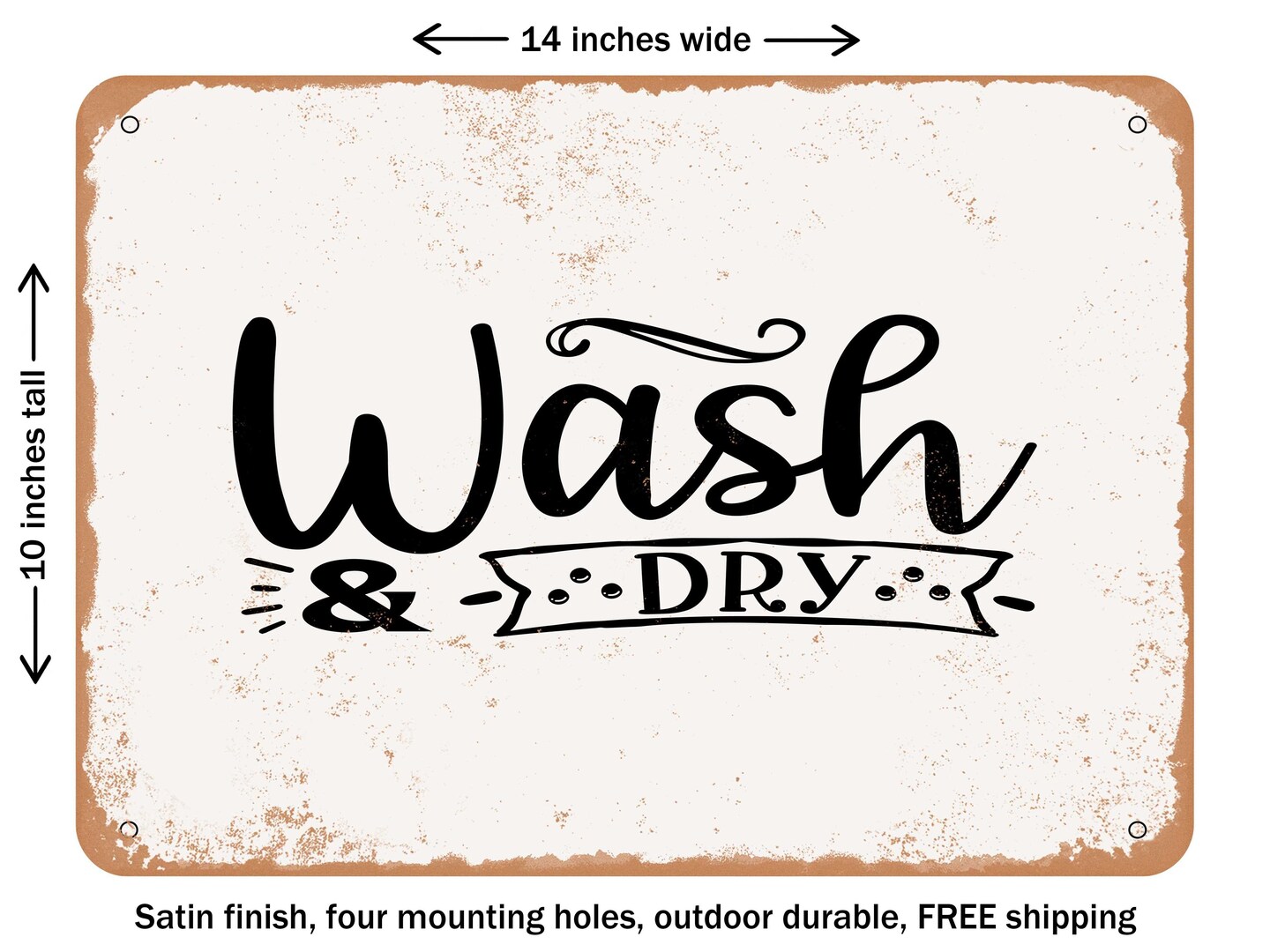 DECORATIVE METAL SIGN - Wash and Dry - Vintage Rusty Look