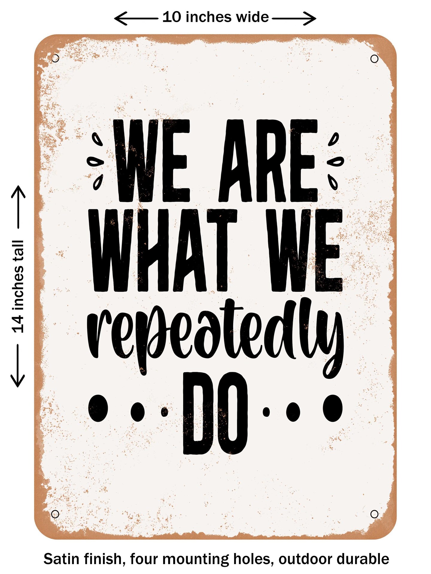DECORATIVE METAL SIGN - We Are What We Repeatedly Do - Vintage Rusty Look