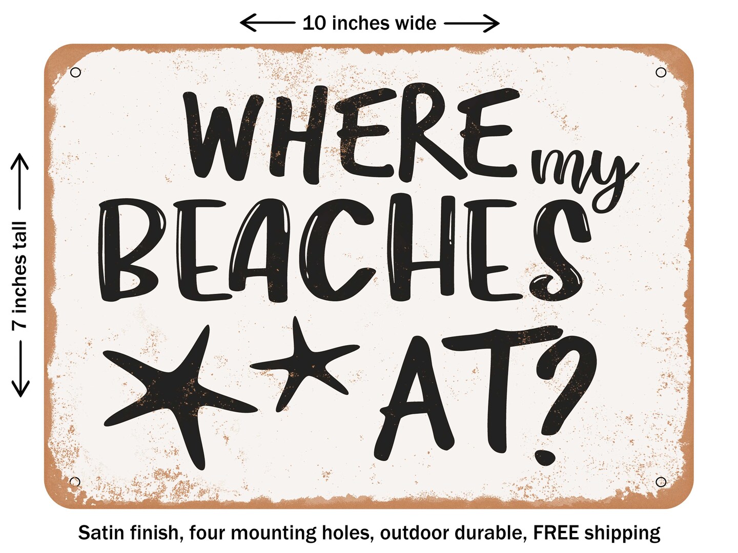 DECORATIVE METAL SIGN - Where My Beaches At - Vintage Rusty Look