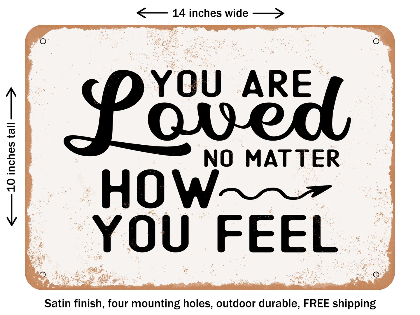 DECORATIVE METAL SIGN - You Are Loved No Matter How You Feel - Vintage Rusty Look