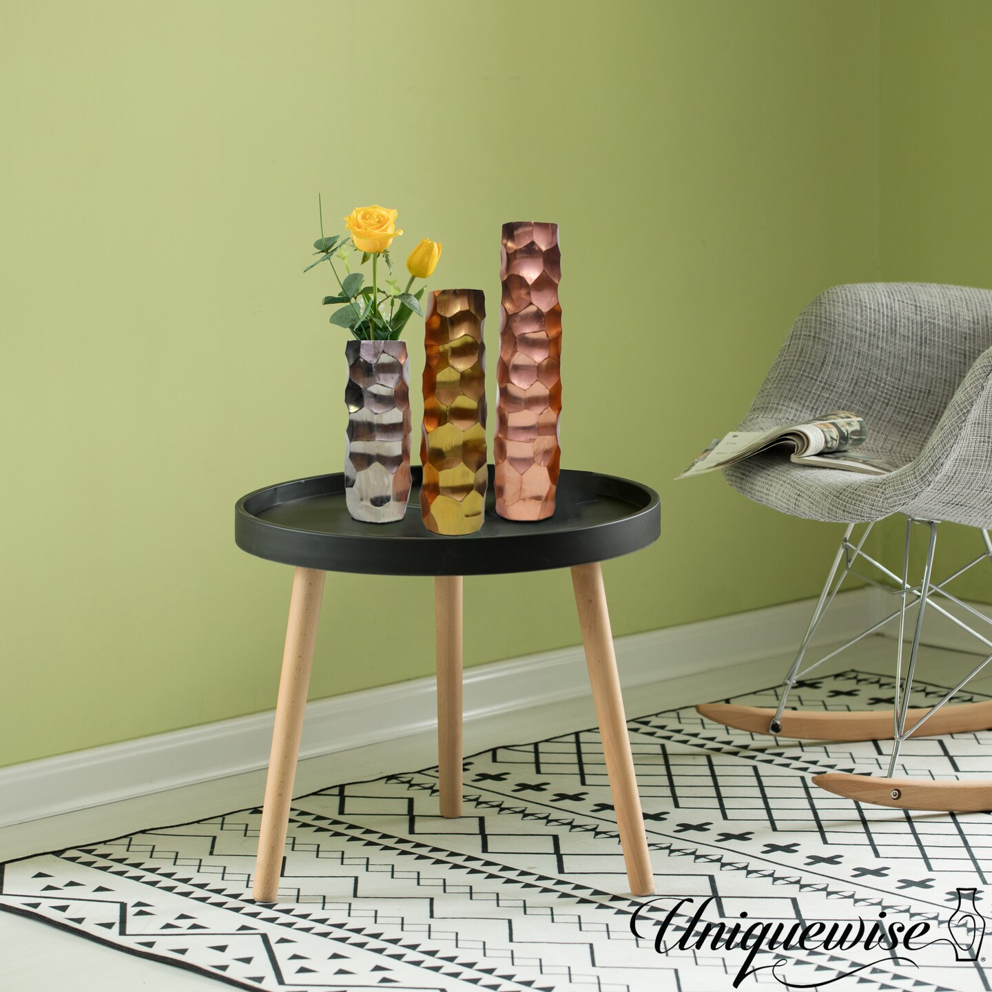 Decorative Modern Metal Honeycomb Design Table Flower Vase, Stylish Contemporary Centerpiece for Dining Room, Living Room, Bedroom, Office, or Wedding Décor with Floral Arrangements