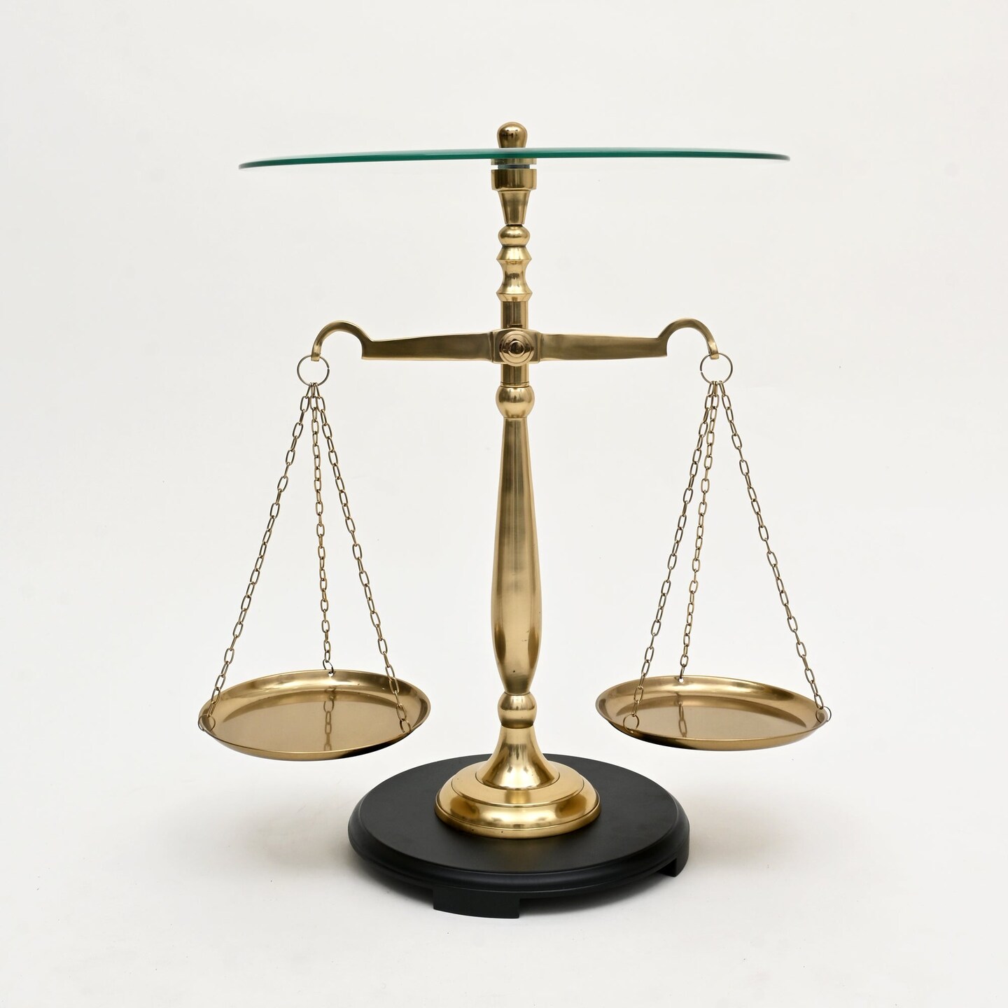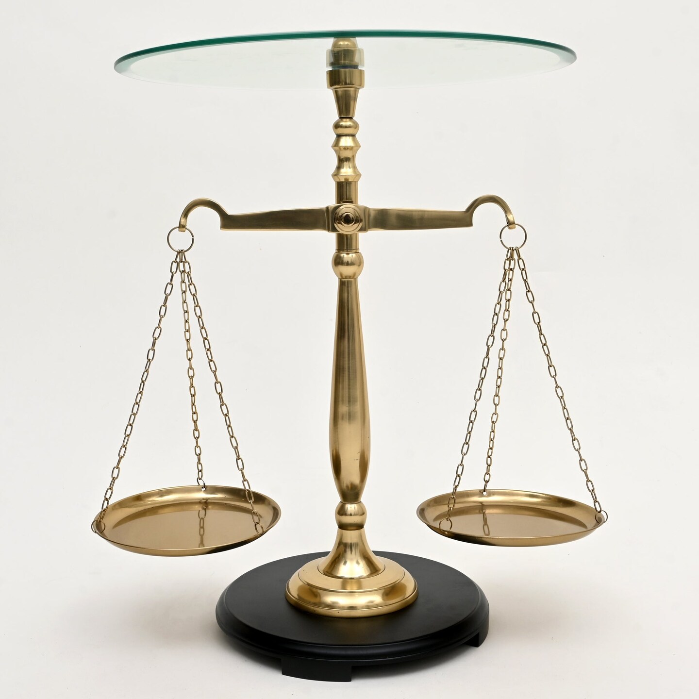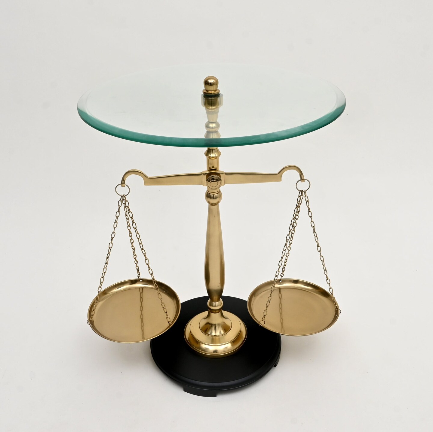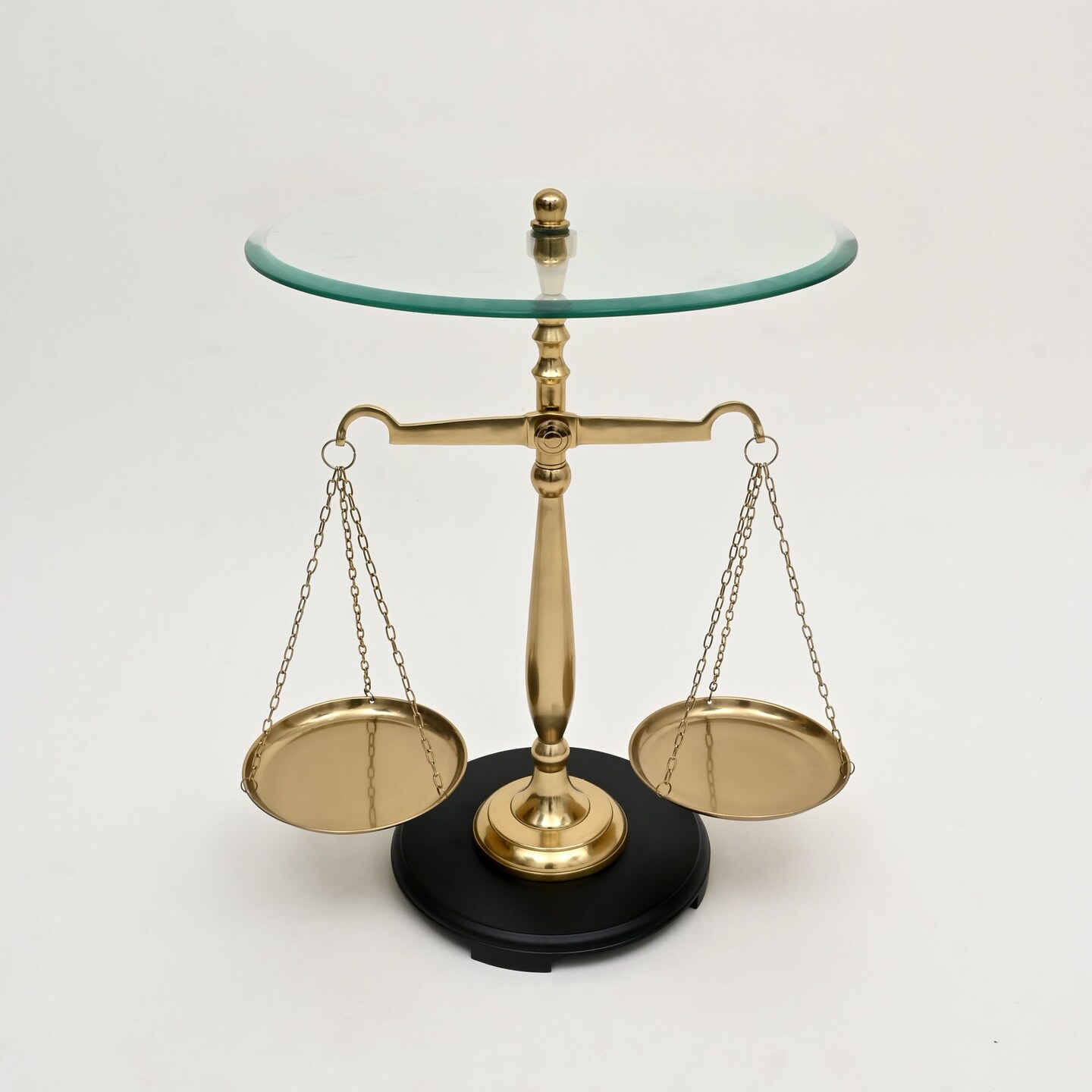 Decorative Nickel Finish Aluminum Balance Libra Accent Table with Glass Top – 16x16x24"| Unique Side Table