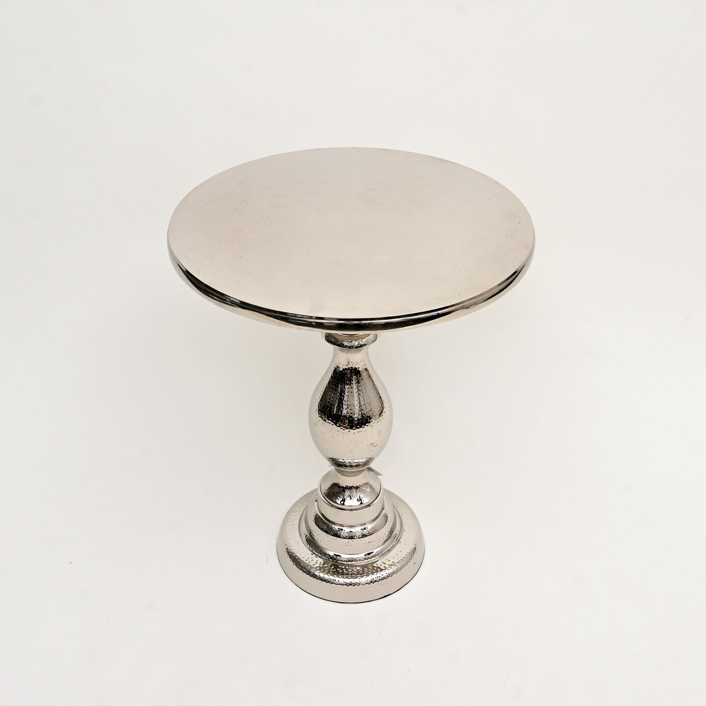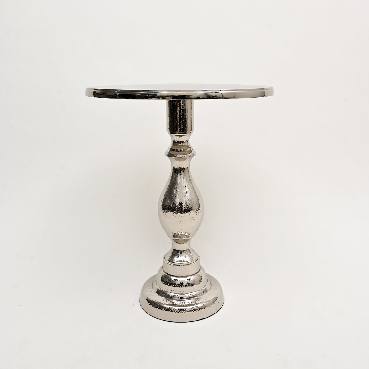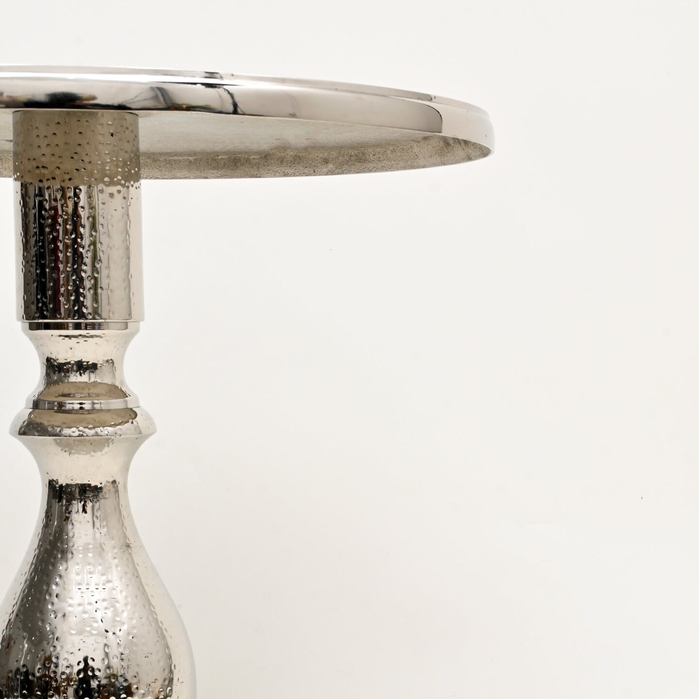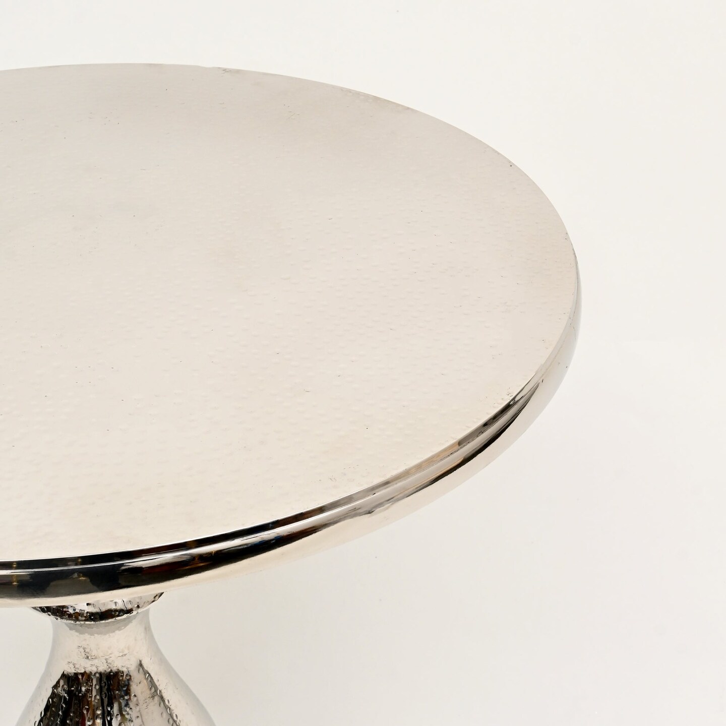 Decorative Nickel Finished Aluminum Hammered Accent Table with Glass Top – 20X20X25.5"| Unique Side Table