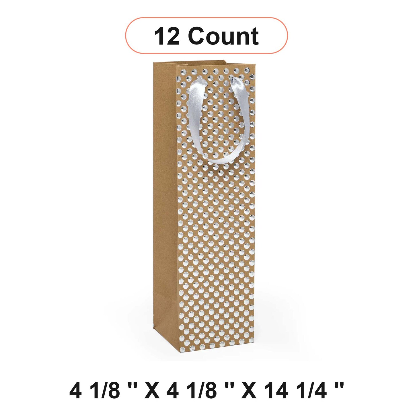 Decorative Polka Dot Wine Bag 4 1/8'' x 4 1/8'' x 14 1/4''
