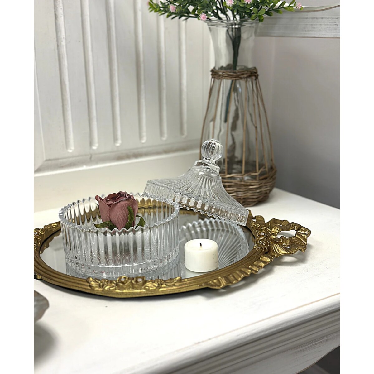 Decorative Ribbed Glass Storage Jar with Lid for Vanity and Kitchen Use
