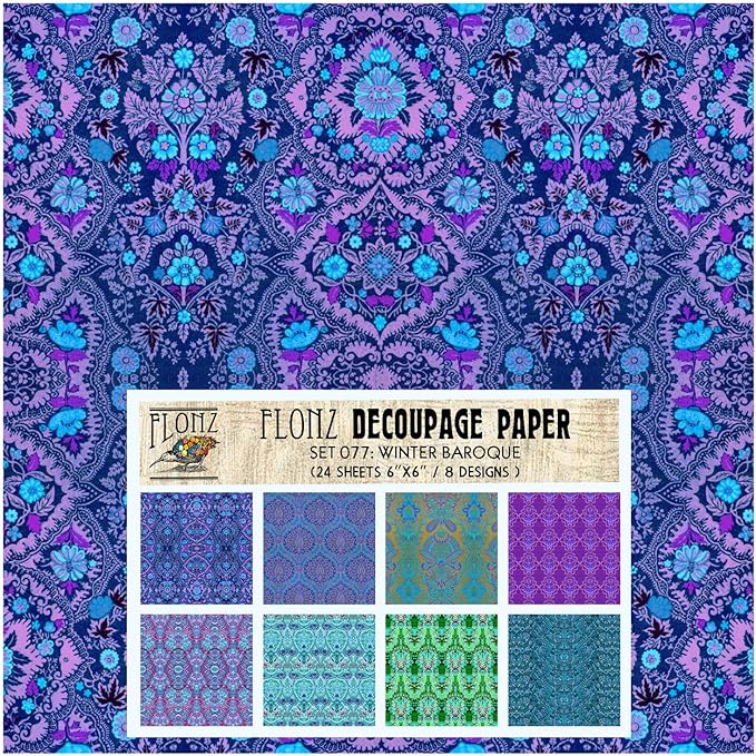 Decoupage Paper Pack (24 Sheets 6"x6") Winter Baroque FLONZ Vintage Styled Paper for Decoupage, Craft and Scrapbooking