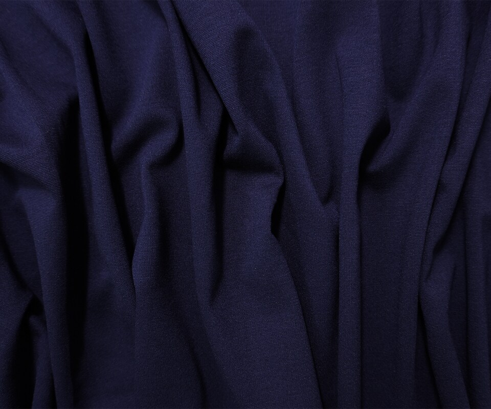 Deep Blue Nylon Blend Stretch Solid Ponte De Roma Double Knit Fabric By the Yard