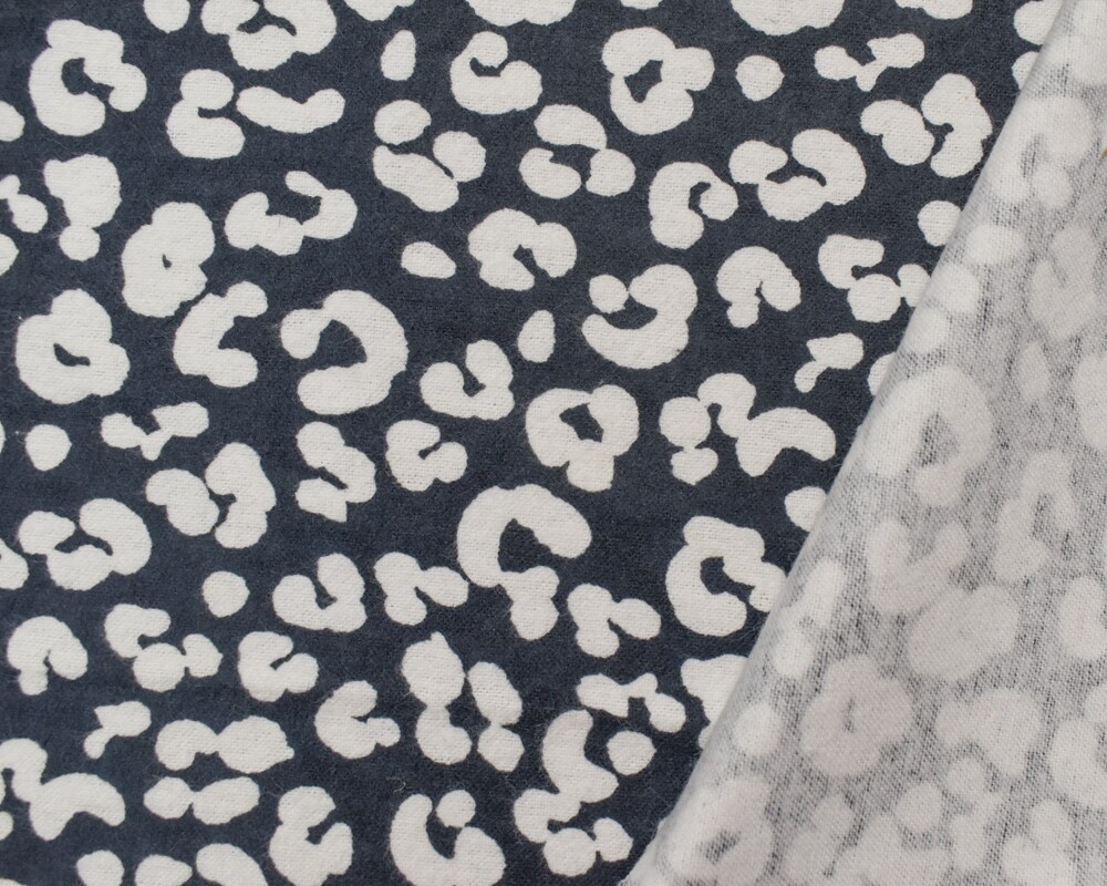 Deep Gray-White Cotton Leopard Printed Flannel Woven Fabric By the Yard