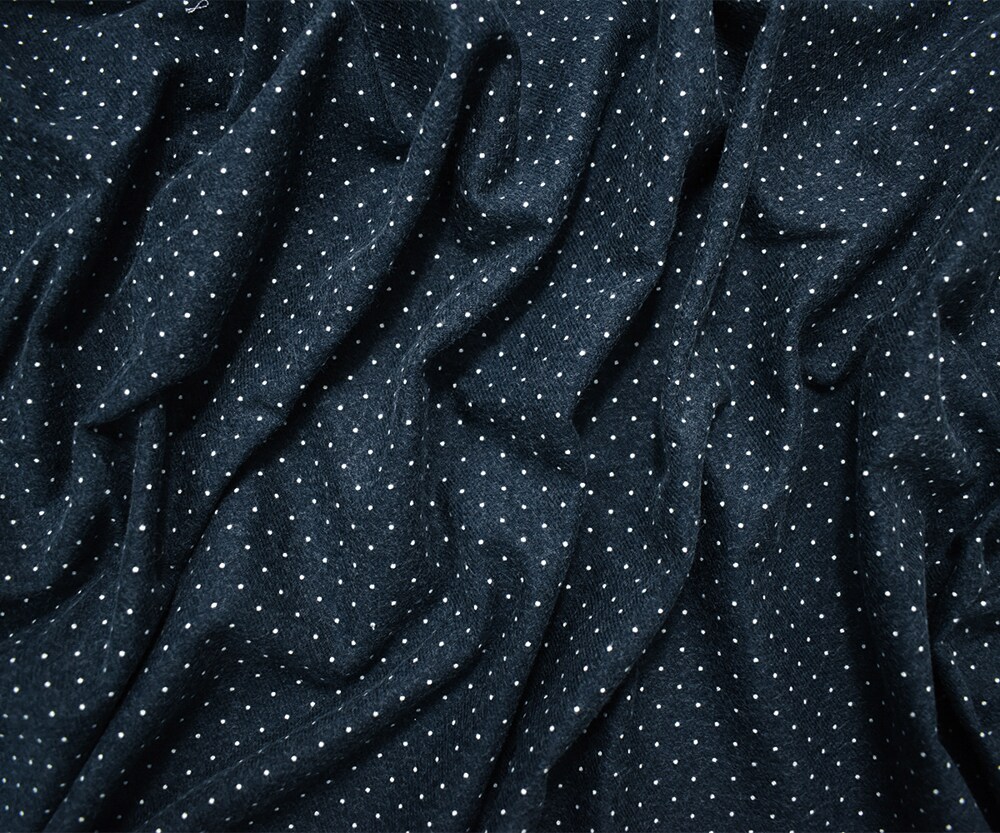 Deep Navy Japanese Cotton Dot Printed Brushed Face Flannel Twill Woven Fabric By the Yard