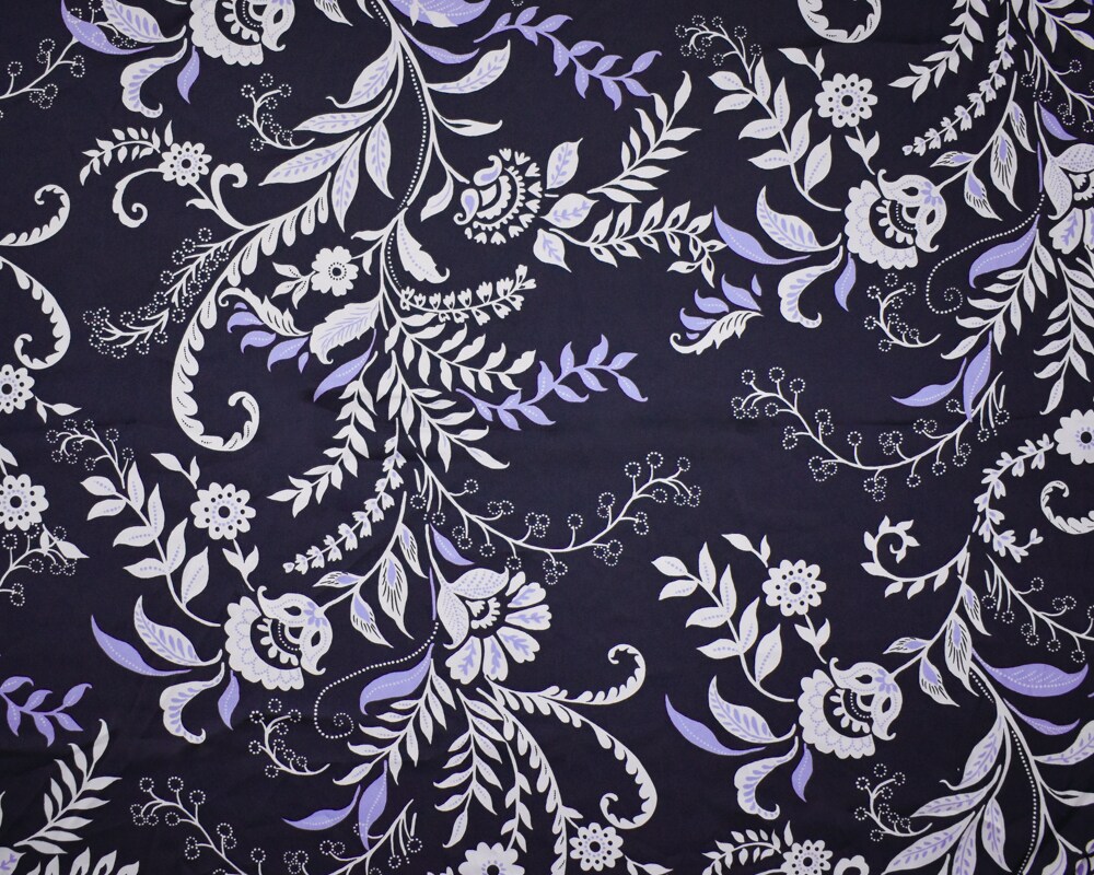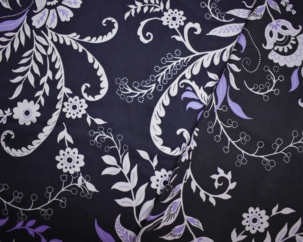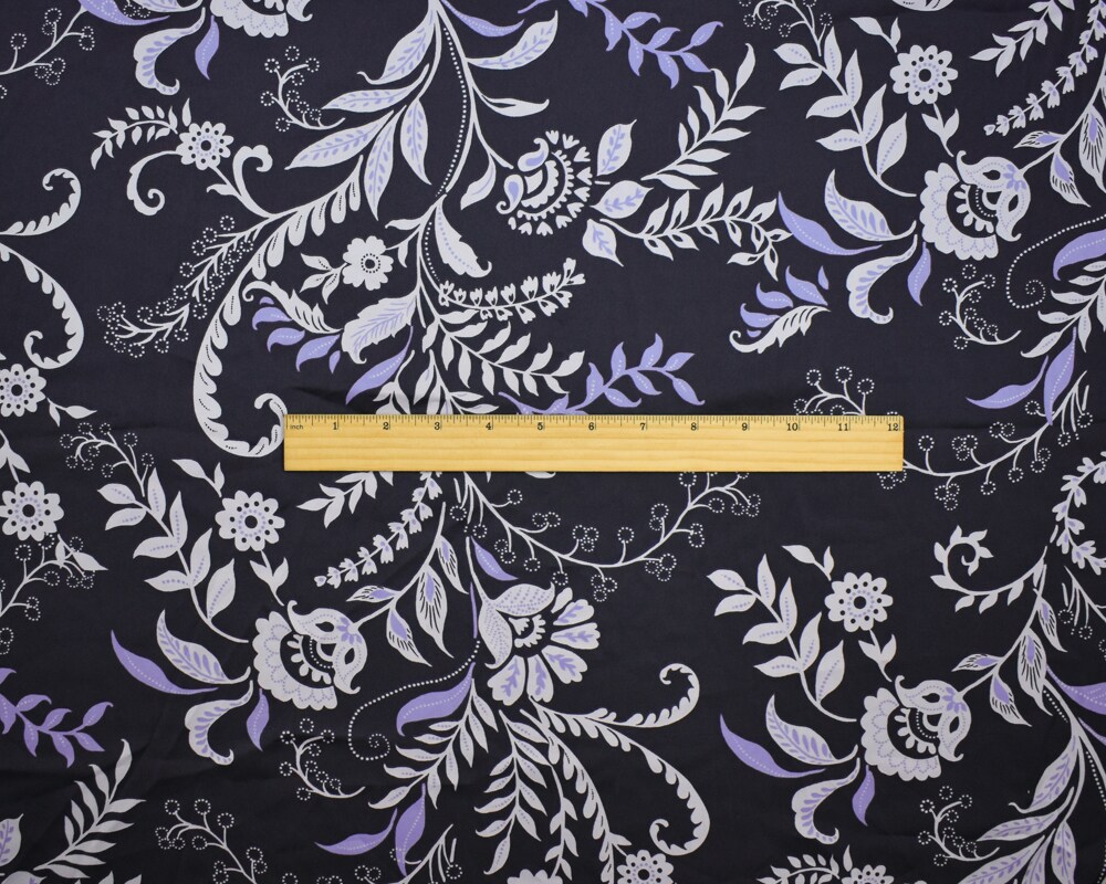 Deep Navy-Purple-Multi Polyester Floral Printed Charmeuse Woven Fabric By the Yard
