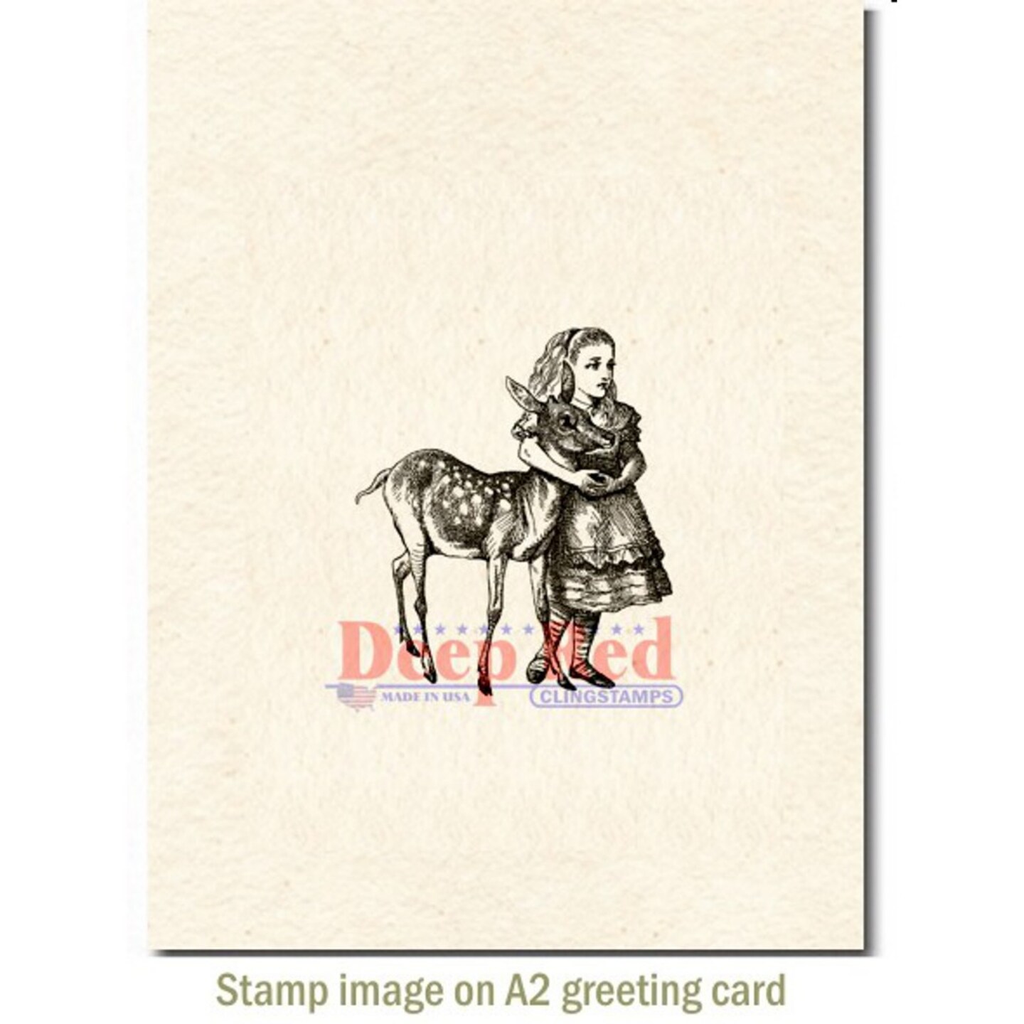 Deep Red Stamps Alice with Deer Rubber Cling Stamp 1.8 x 2.1 inches