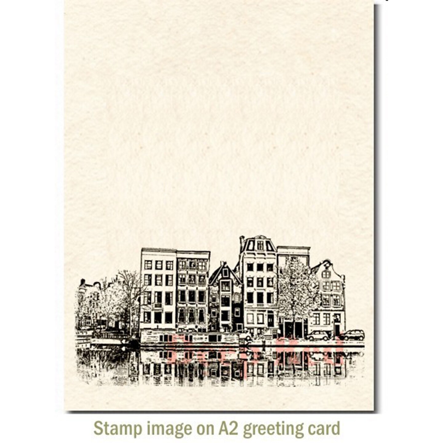 Deep Red Stamps Amsterdam Waterfront Rubber Cling Stamp 4 x 2.5 inches