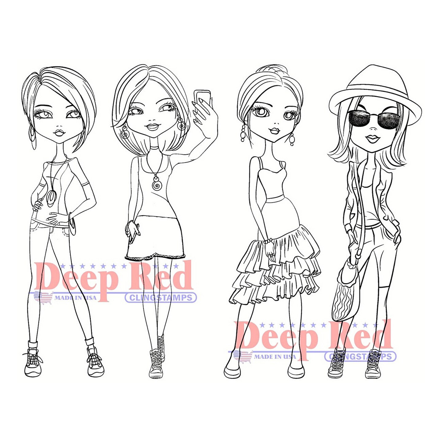 Deep Red Stamps City Girls Summer Vacation Rubber Cling Stamp 4 x 6 inches