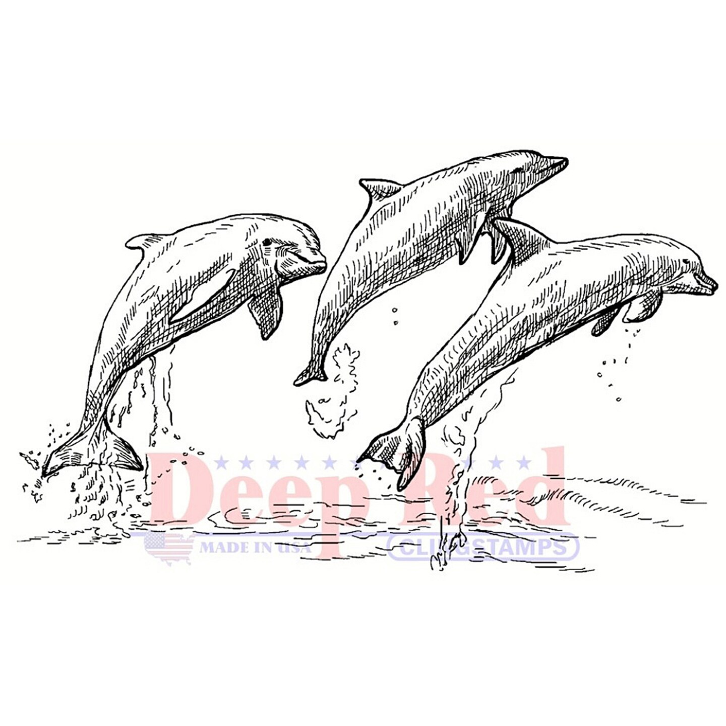 Deep Red Stamps Dolphins Rubber Cling Stamp 3 x 2 inches