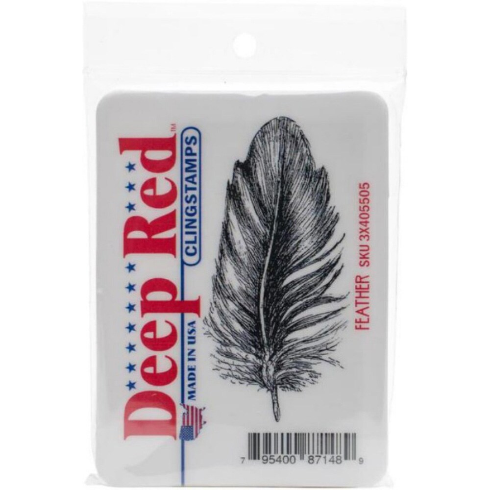 Deep Red Stamps Feather Rubber Cling Stamp 1.5 x 3.2 inches