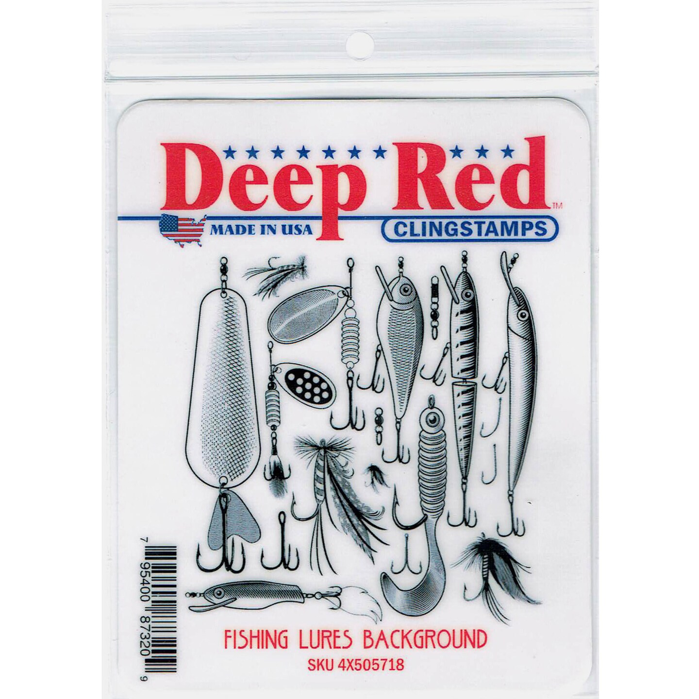 Deep Red Stamps Fishing Lures Background Rubber Cling Stamp 3 x 3 inches