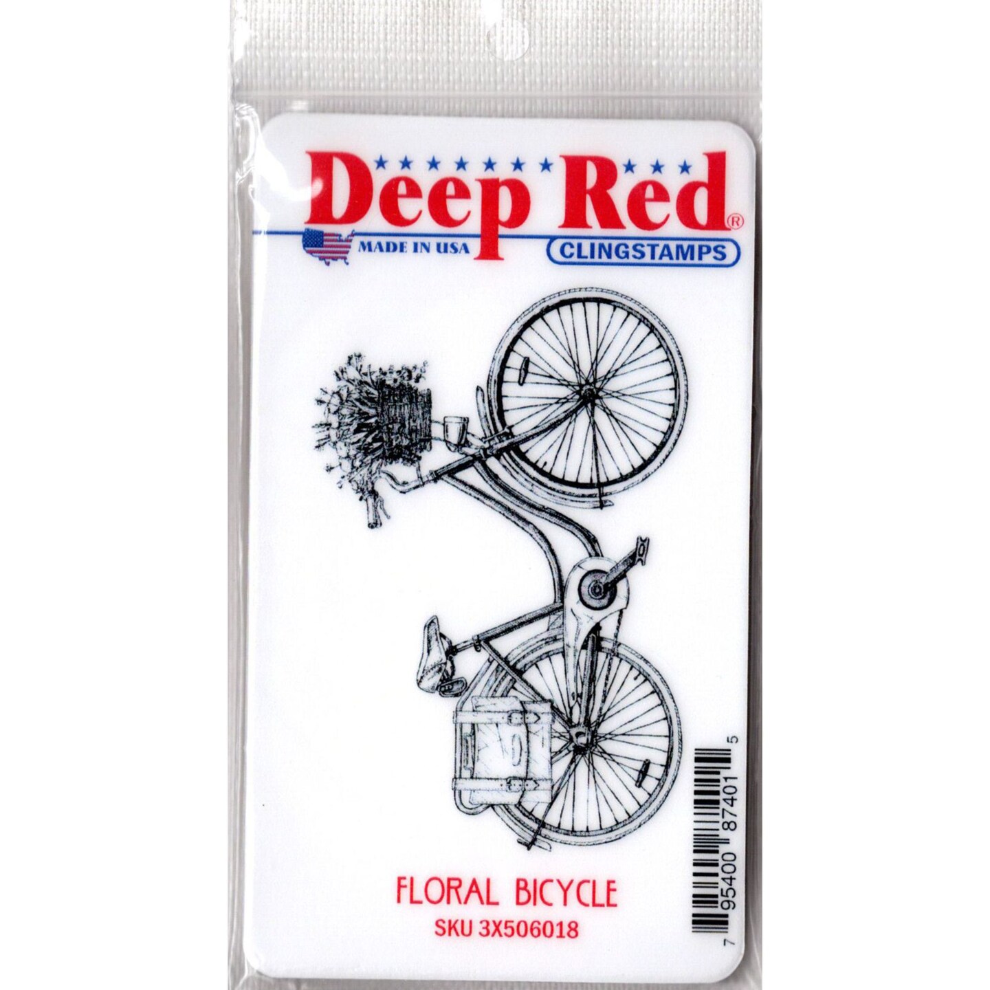 Deep Red Stamps Floral Bicycle Rubber Cling Stamp 3.1 x 2.1 inches