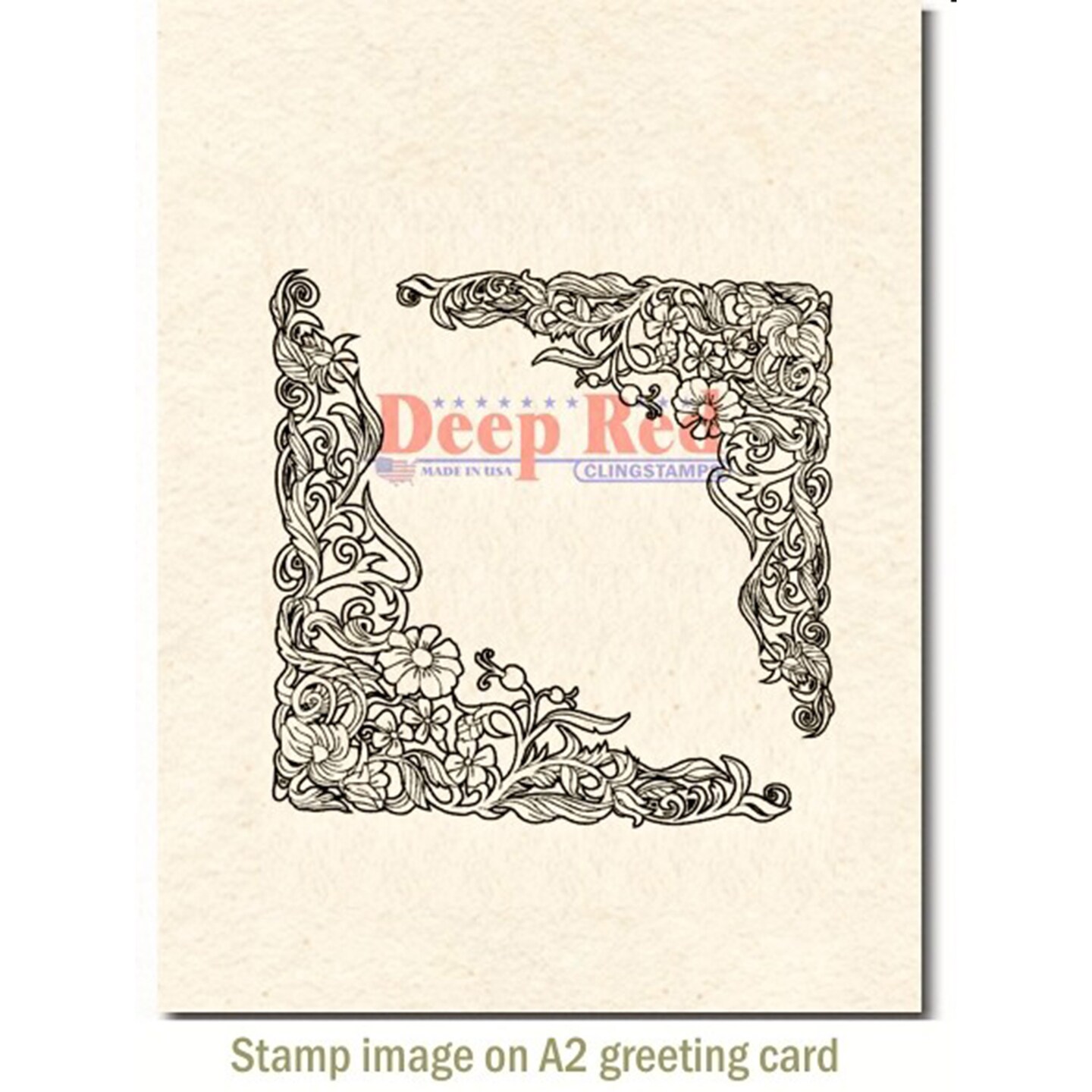 Deep Red Stamps Floral Corners Rubber Cling Stamp 3 x 3 inches