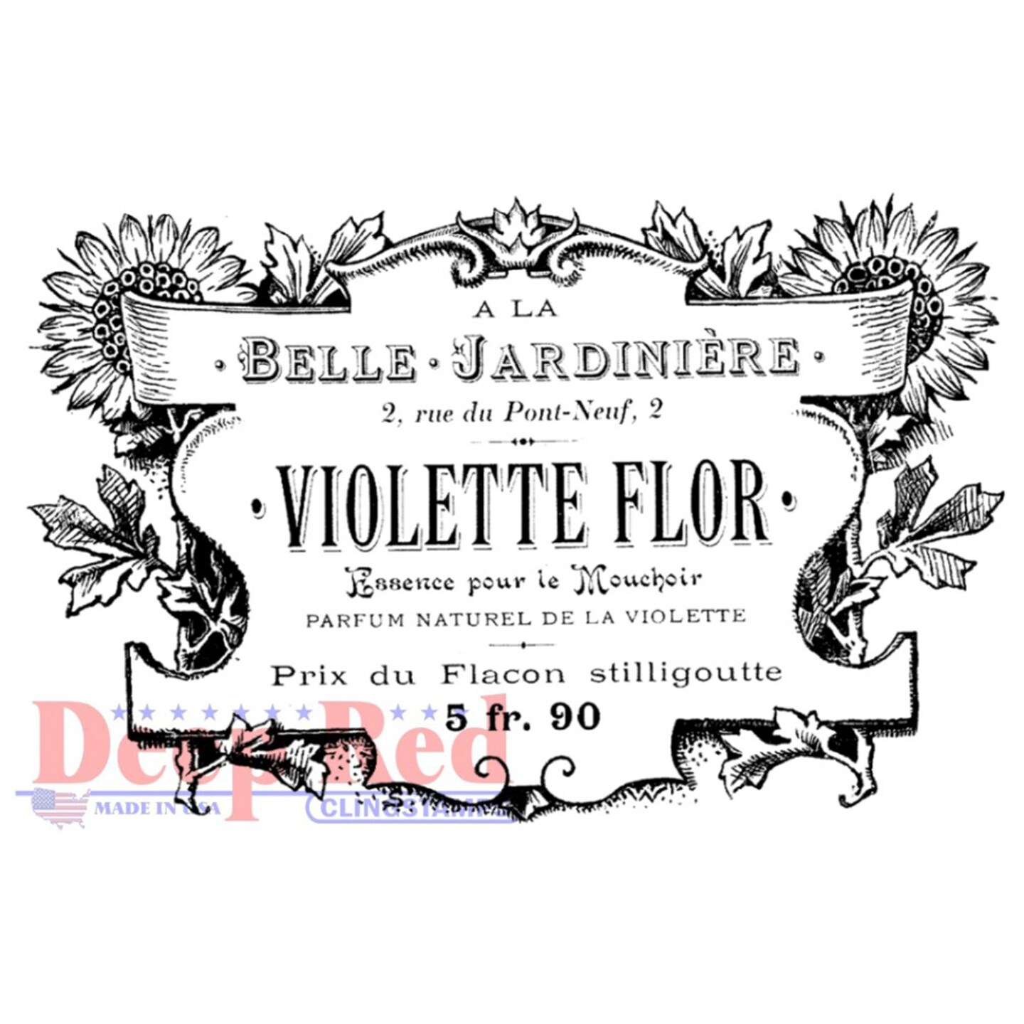 Deep Red Stamps French Perfume Label Rubber Cling Stamp 3.5 x 2.25 inches