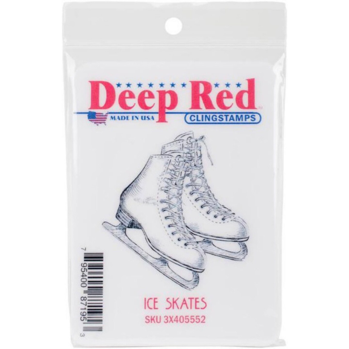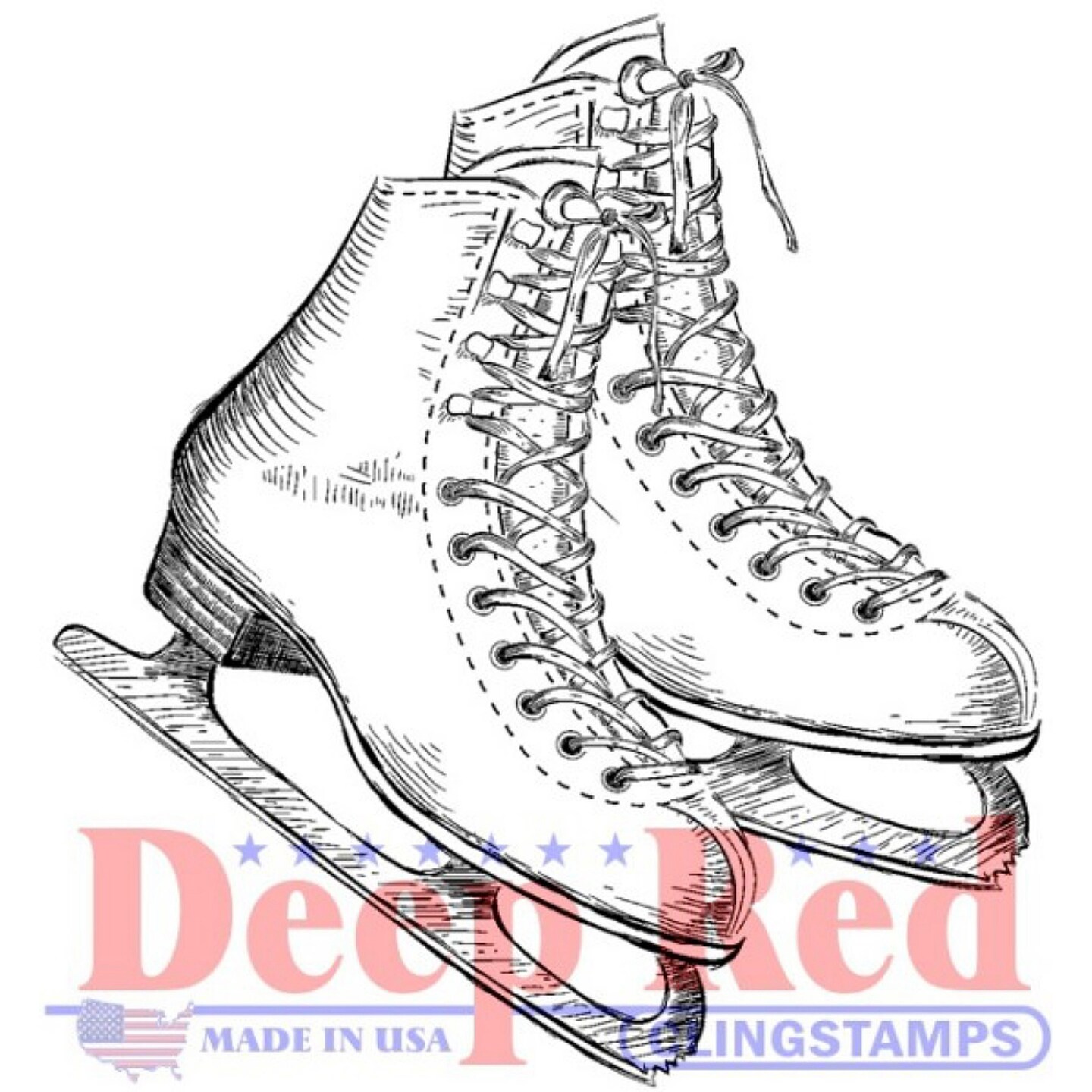 Deep Red Stamps Ice Skates Rubber Cling Stamp 2 x 2.1 inches
