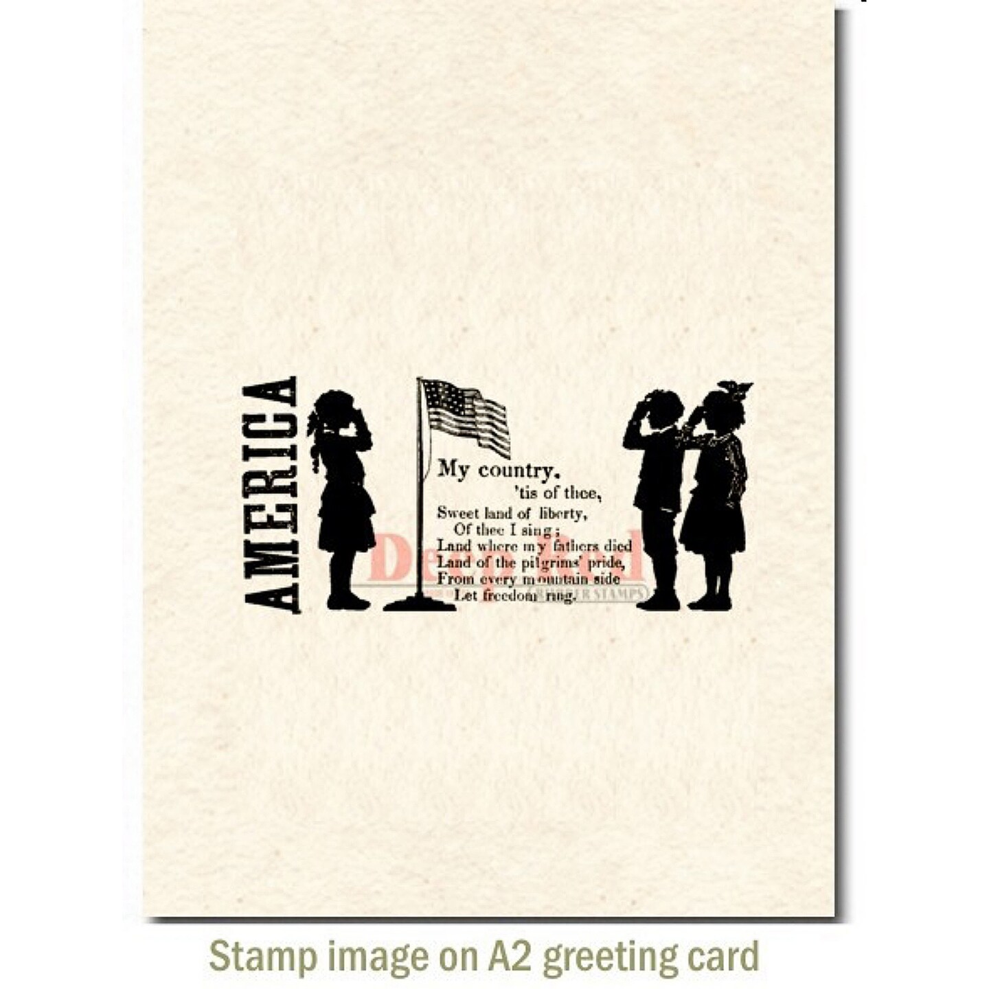 Deep Red Stamps My Country Rubber Cling Stamp 3 x 1.5 inches