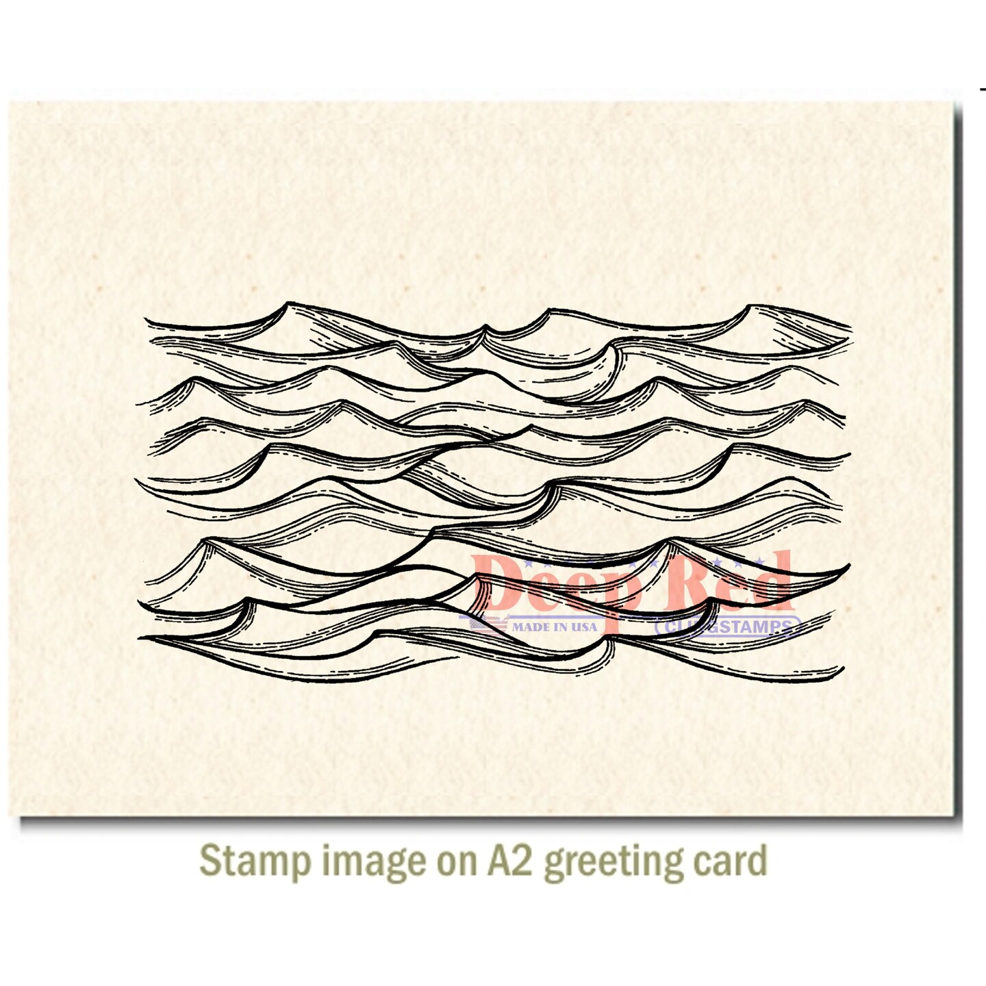 Deep Red Stamps Ocean Waves Rubber Cling Stamp 4.2 x 2.2 inches