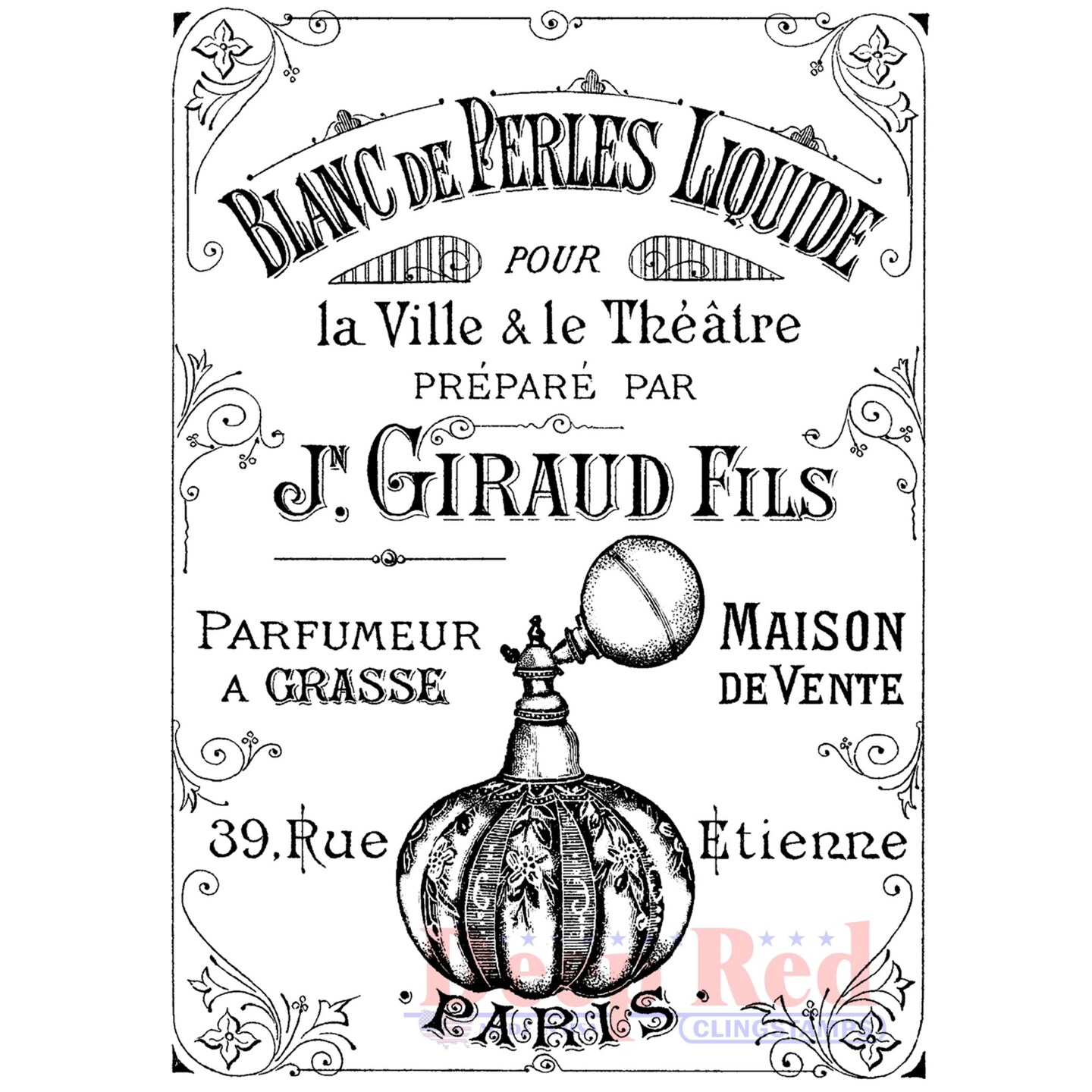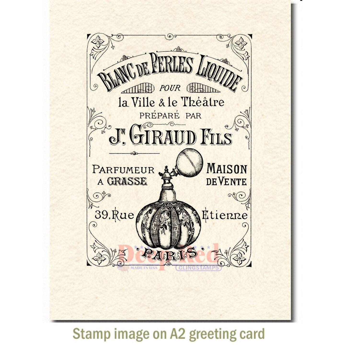 Deep Red Stamps Paris Perfume Rubber Cling Stamp 3 x 4 inches