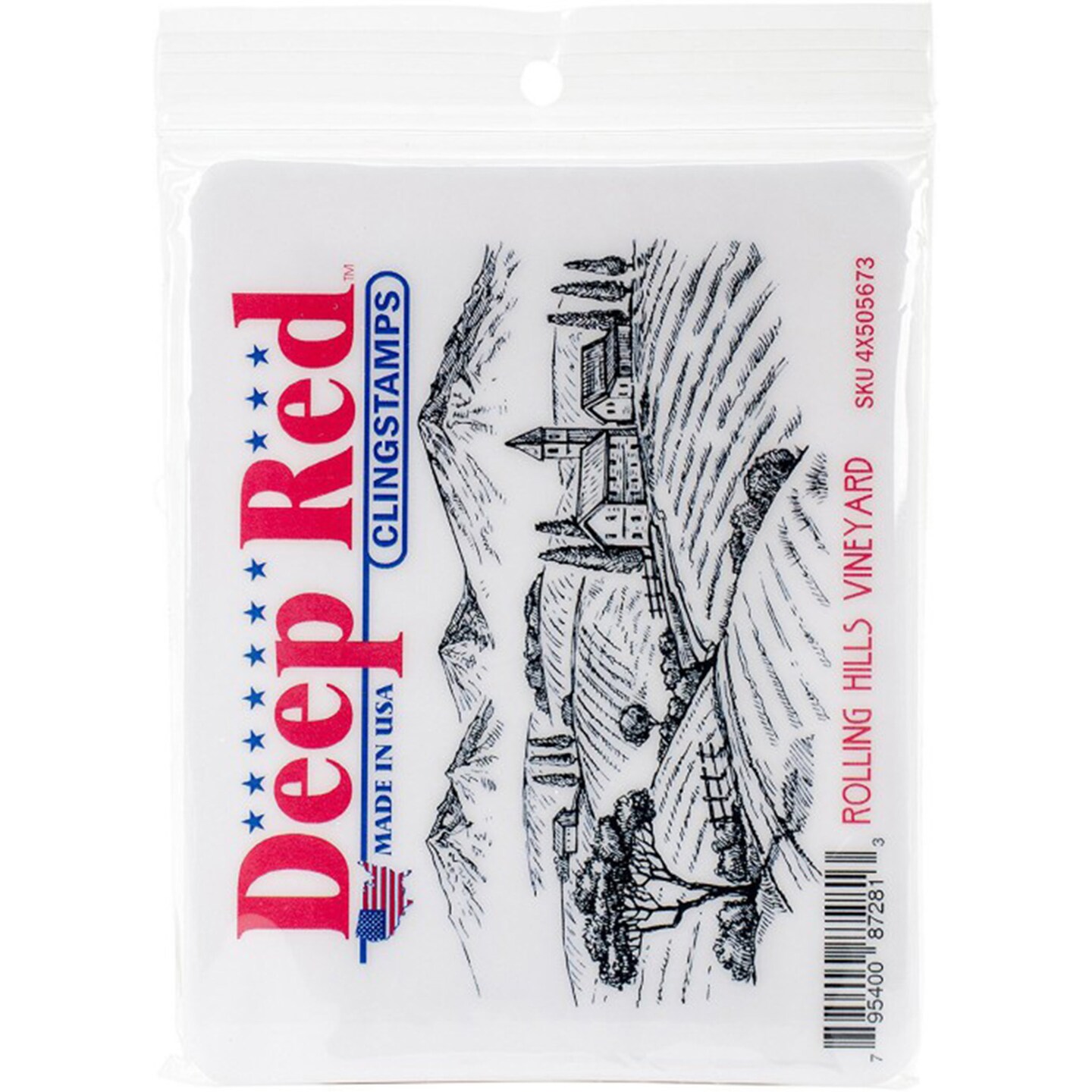 Deep Red Stamps Rolling Hills Vineyard Rubber Cling Stamp 4.1 x 2 inches