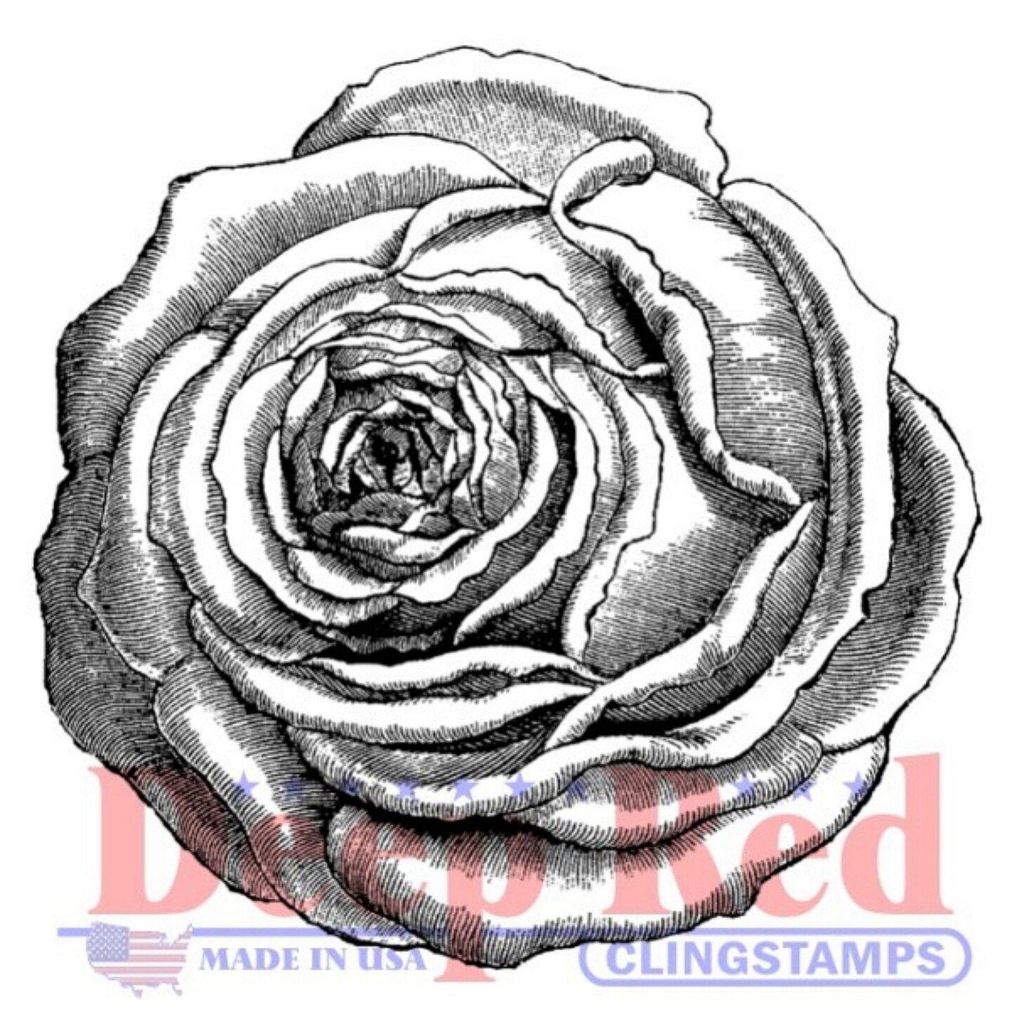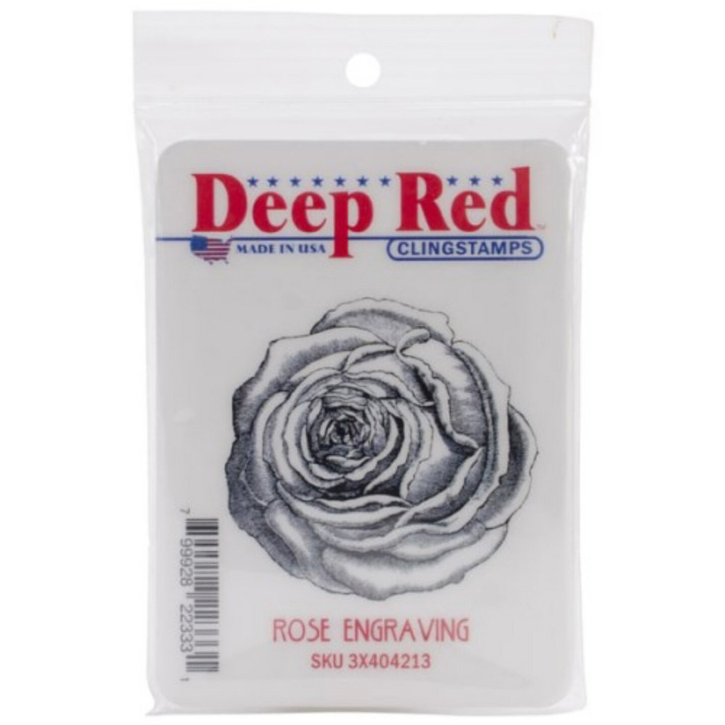 Deep Red Stamps Rose Engraving Rubber Cling Stamp 2.1 x 2 inches