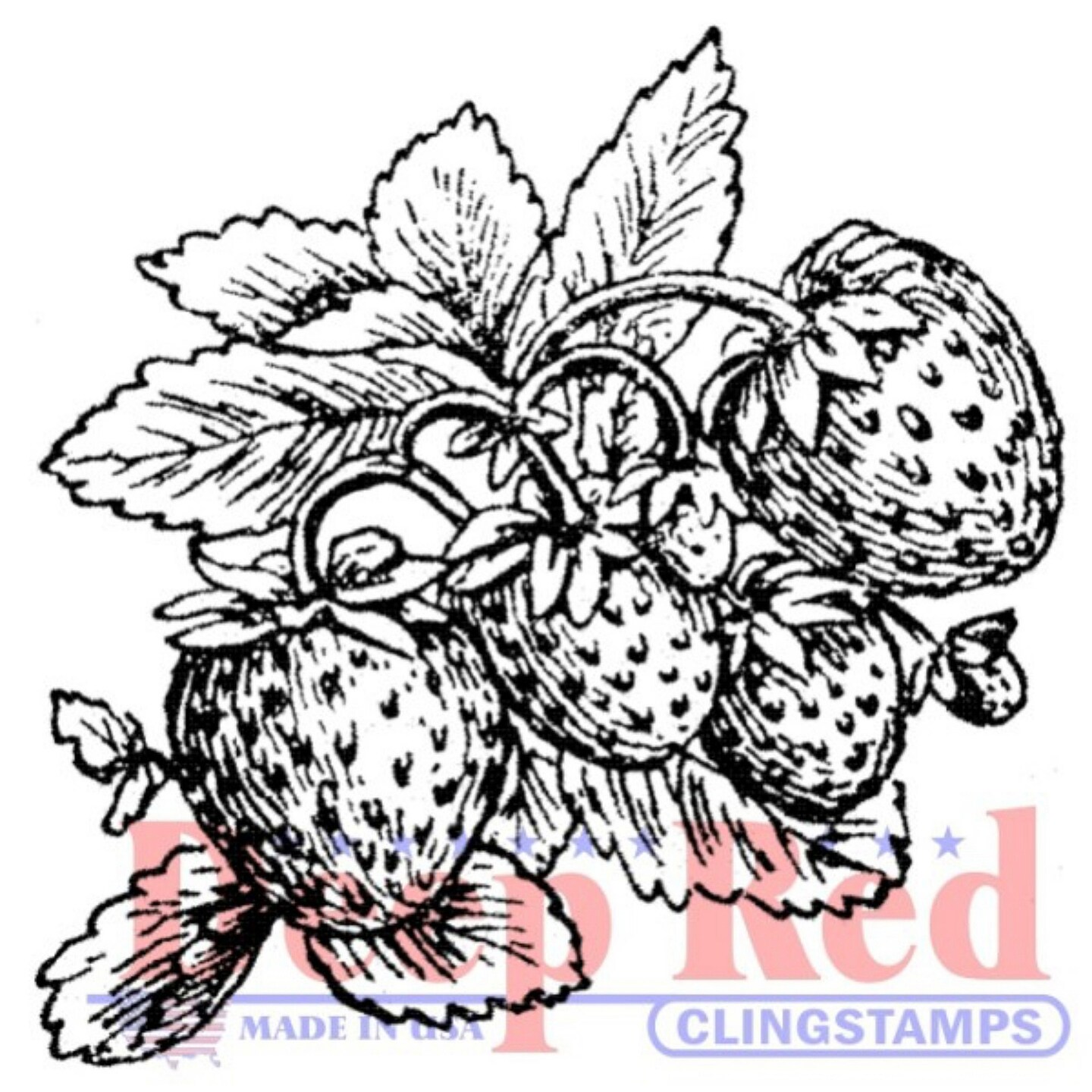 Deep Red Stamps Strawberries Rubber Cling Stamp 2 x 2 inches