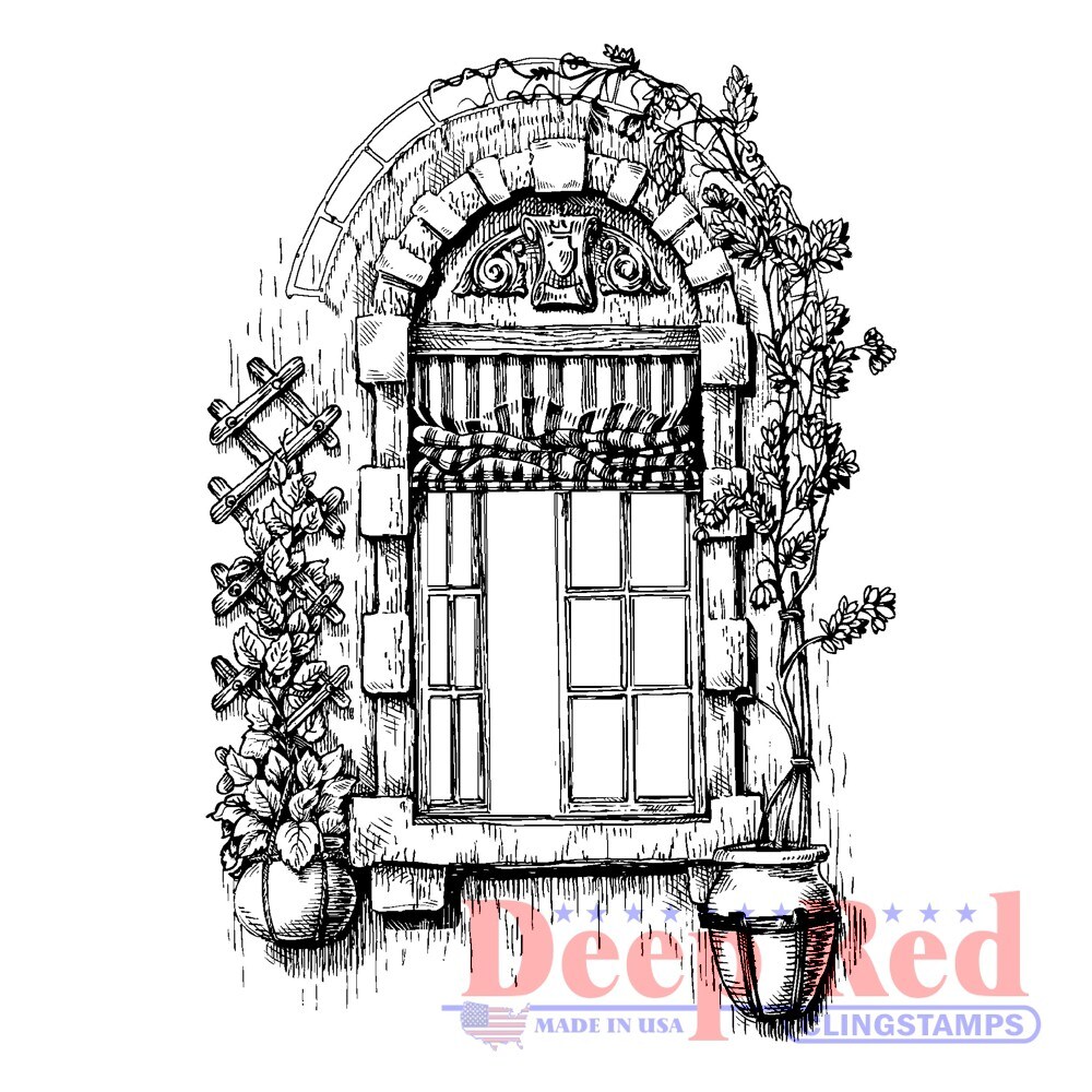 Deep Red Stamps Villa Window Rubber Cling Stamp 2 x 3 inches