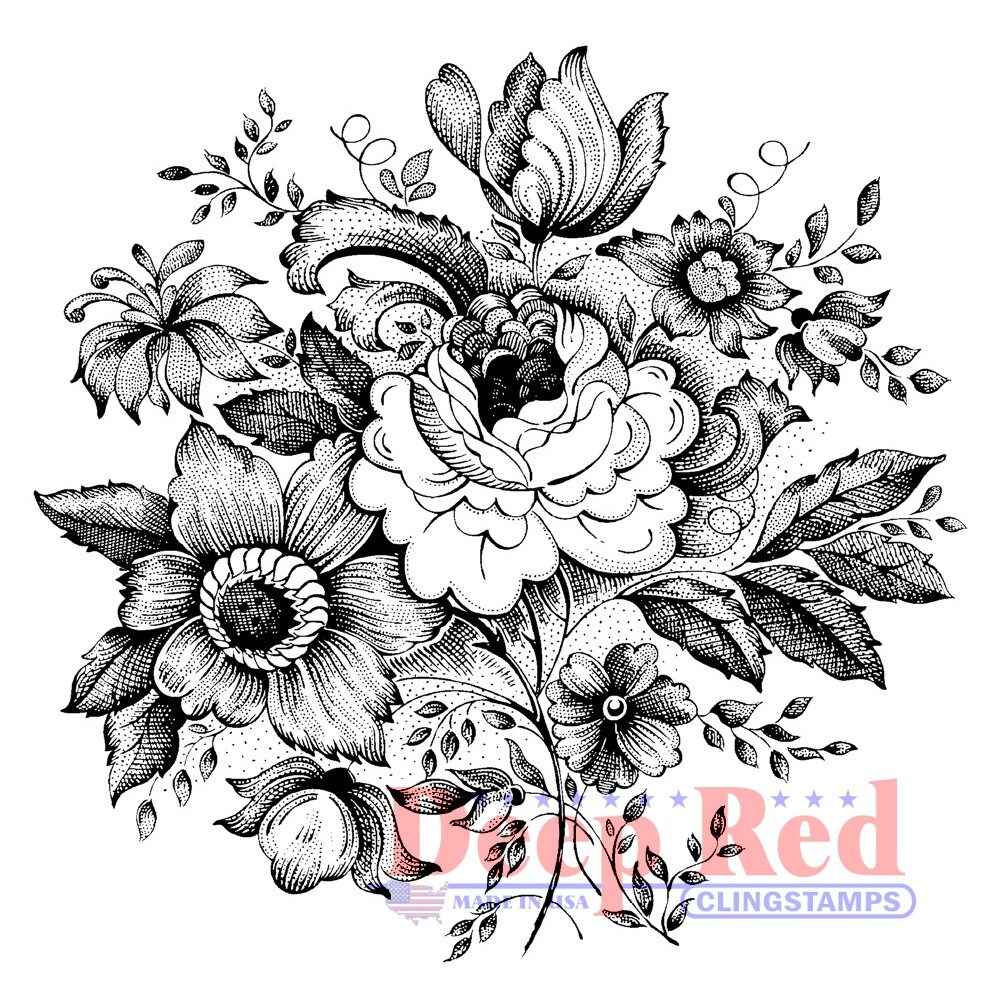 Deep Red Stamps Wildflower Bunch Rubber Cling Stamp 3.1 x 3 inches