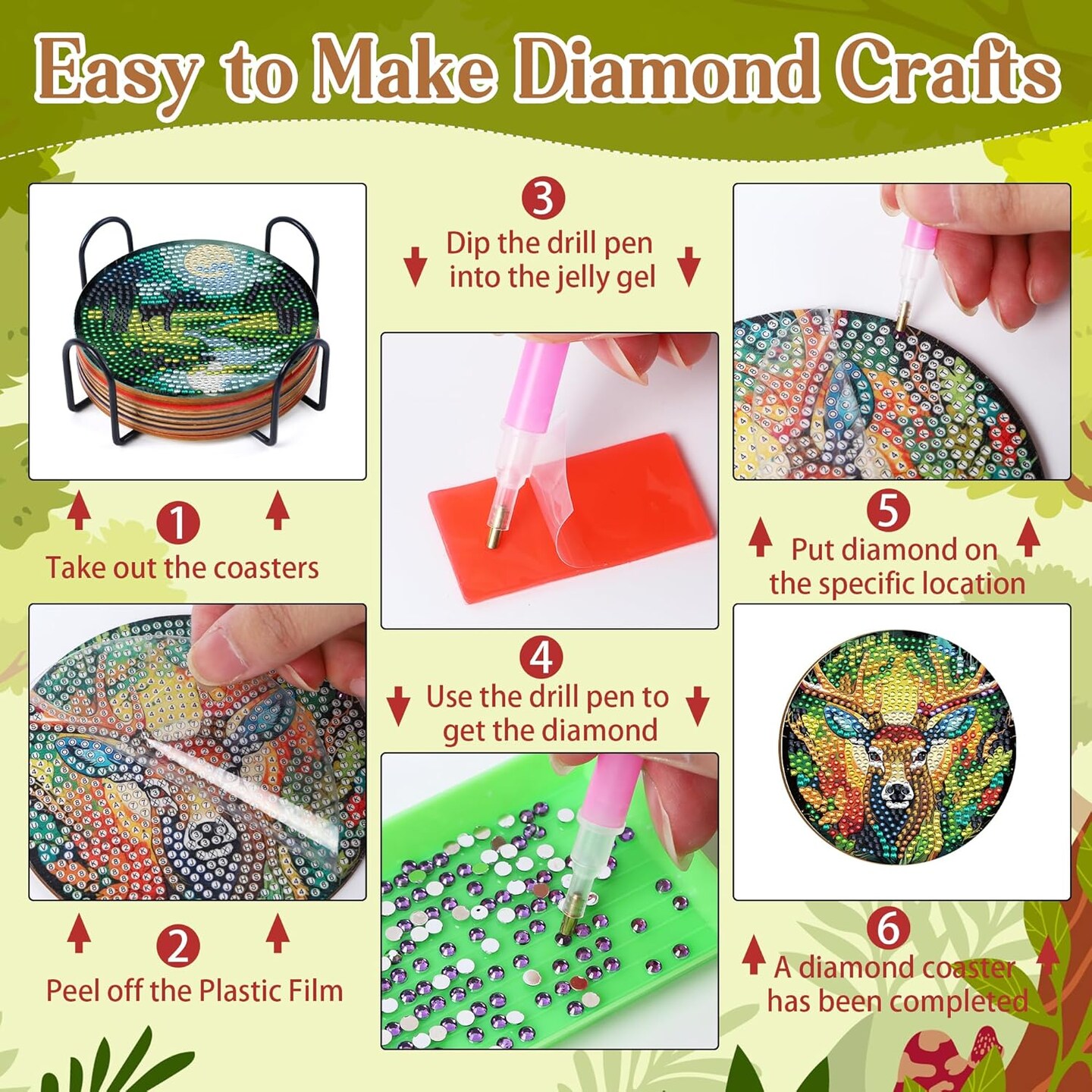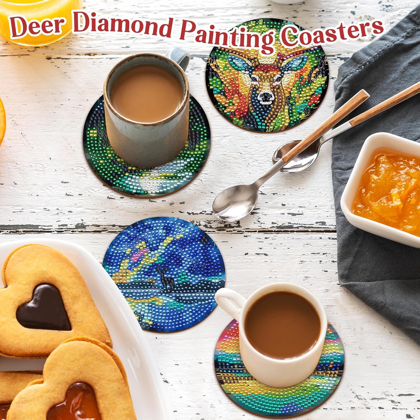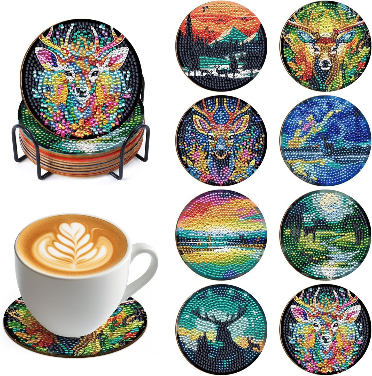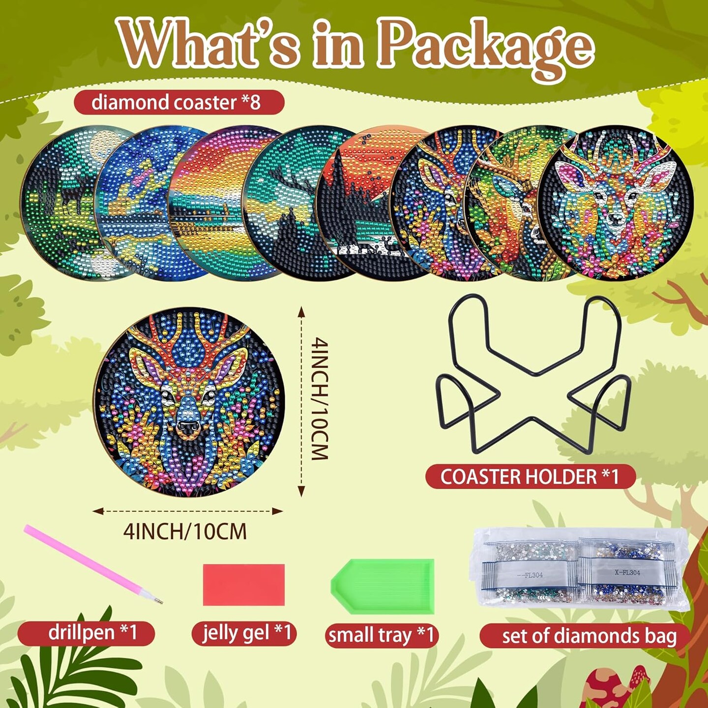 Deer Diamond Coasters - 8 Pc Kit, Forest Deer Design