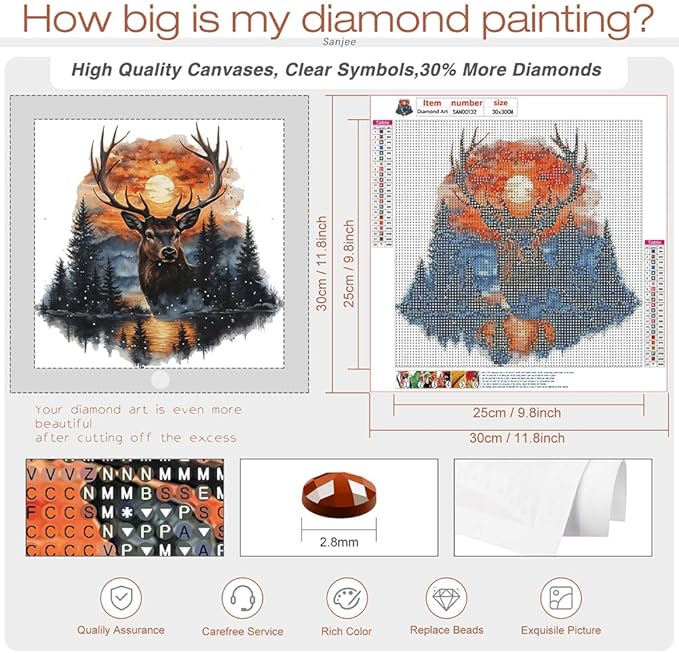 Deer Diamond Painting Kit for Adults, 5D Round Full Drill Diamond Art, DIY Paint by Diamonds Craft for Beginners, Home Wall Decor & Gift, 12 x 12 Inch